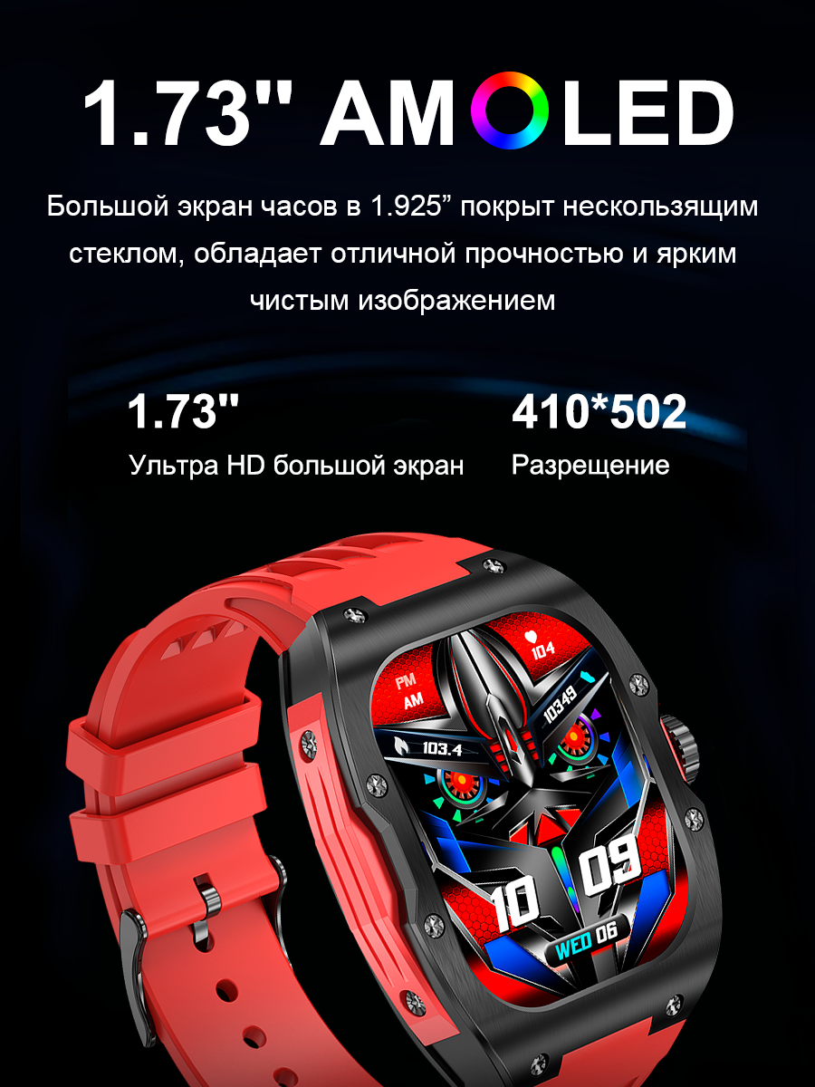 Смарт-часы умные наручные SMART PRESENT DA10 мужские, прямоугольные, с функцией телефона, с большим дисплеем, красные интересное: