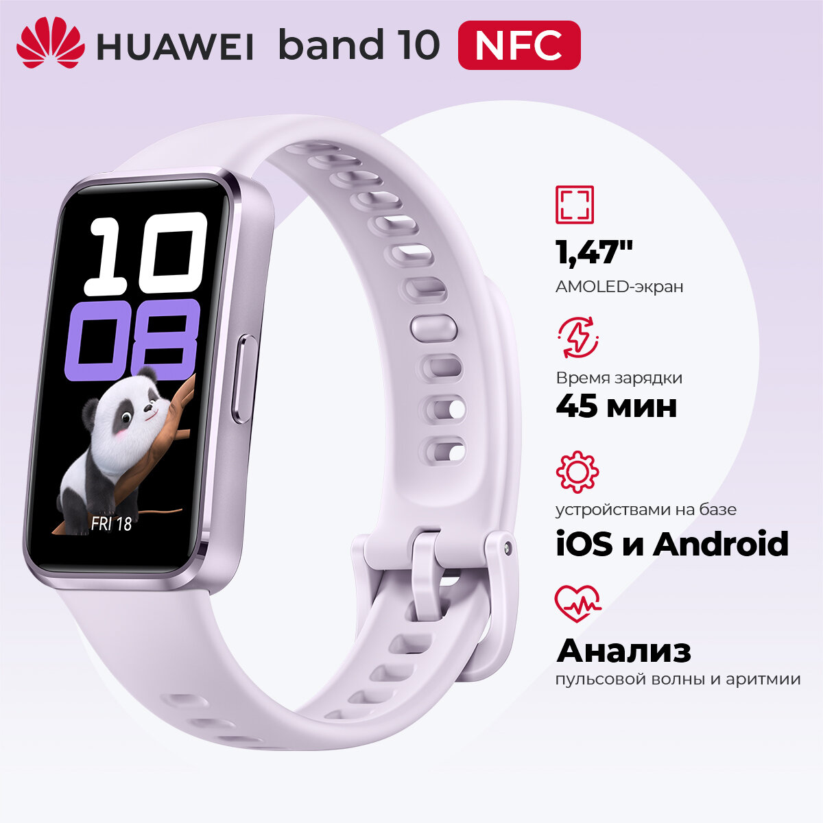 Фитнес-браслет Huawei Band 10 NRA-B29, AMOLED 1.47", Фиолетовый интересное: