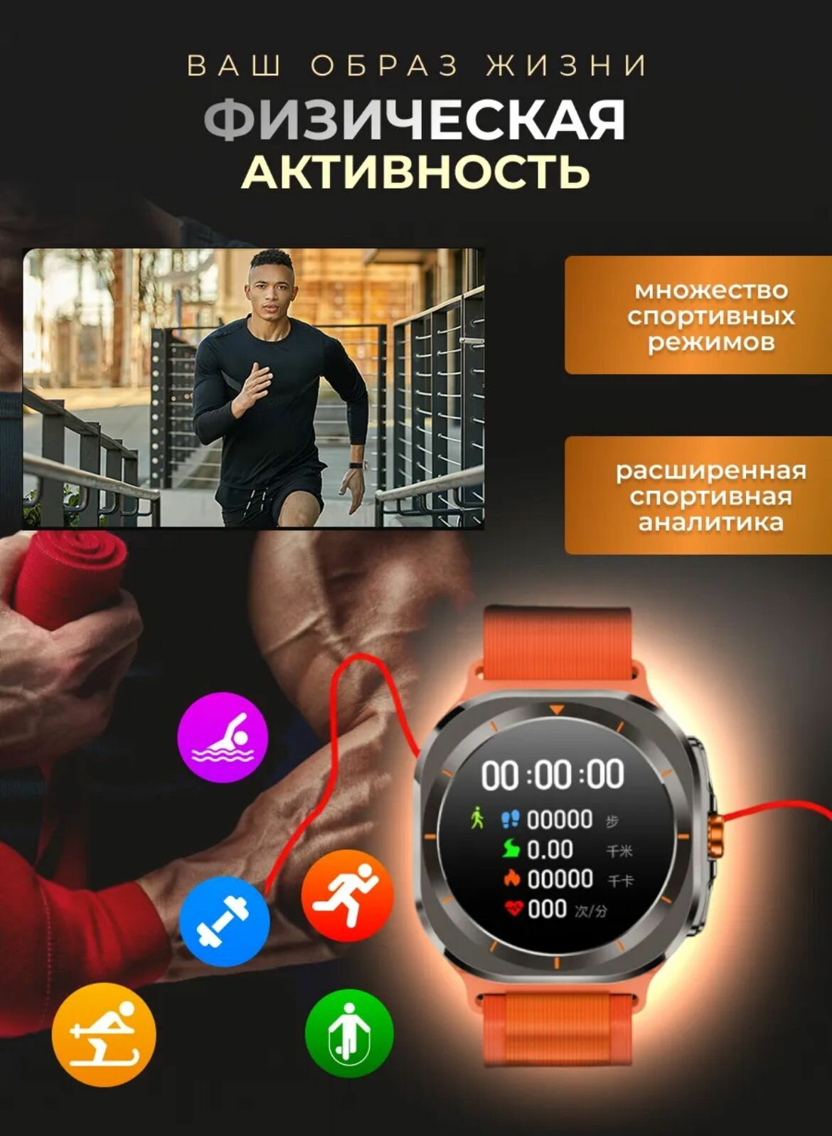 Смарт часы DT Watch Ultra, умные часы, дисплей 47 mm, цвет чёрный интересное: