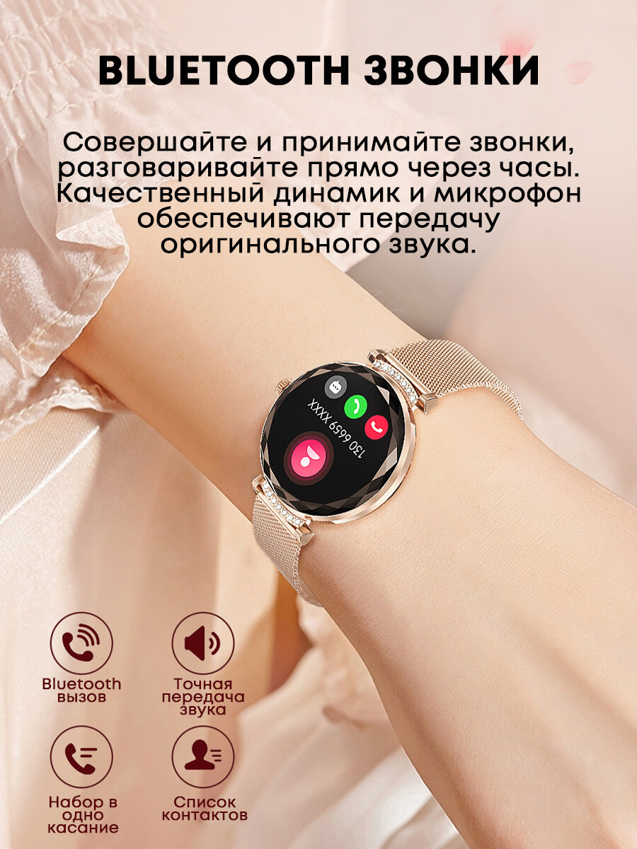 Kingwear Женские смарт часы Amoled с bluetooth звонком (Золотистый) интересное: