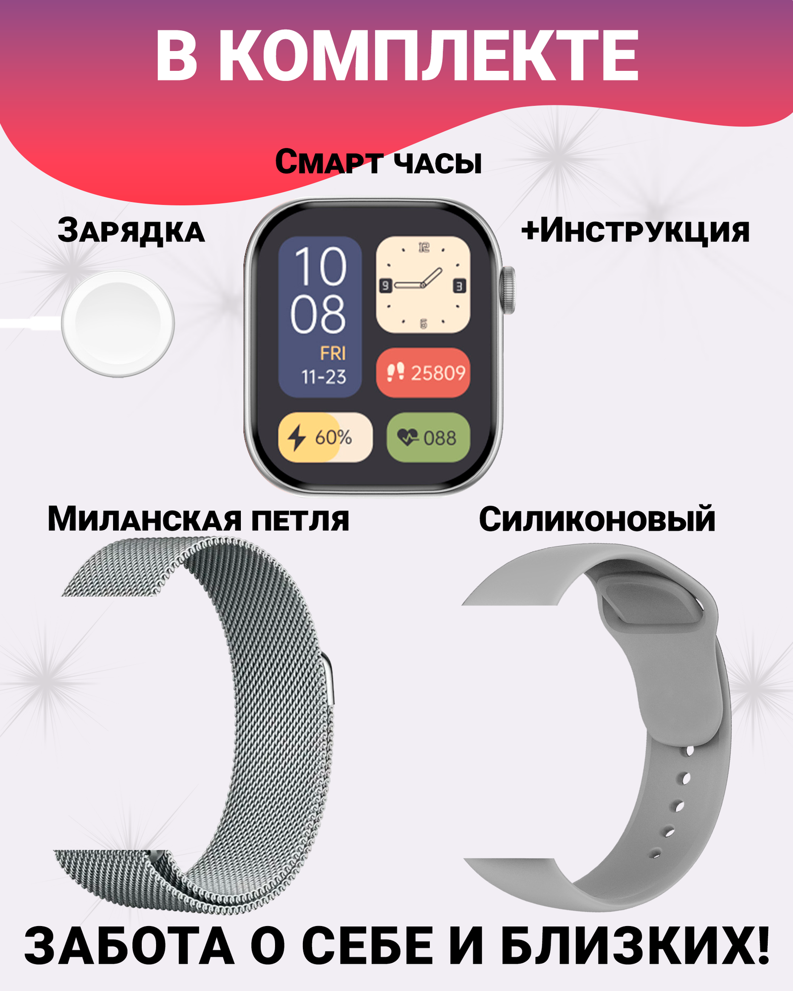 СохранитьУмные часы Smart Watch X10 с HD AMOLED 2.06", IP67, NFC, SpO2 и микрофоном, серебристые интересное: