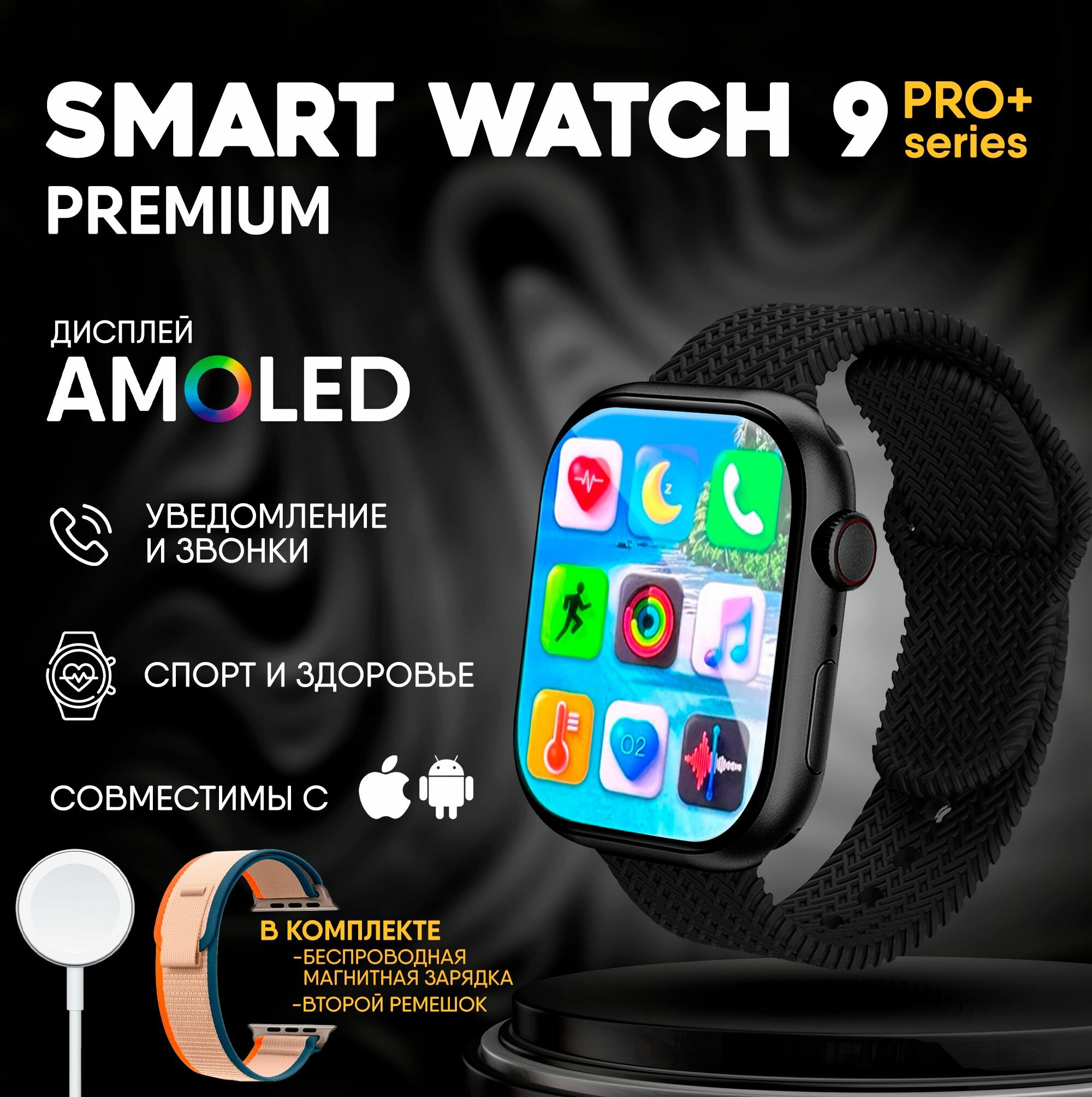 Смарт часы как женские, так и мужские водонепроницаемые 9 серии Pro+AMOLED интересное: