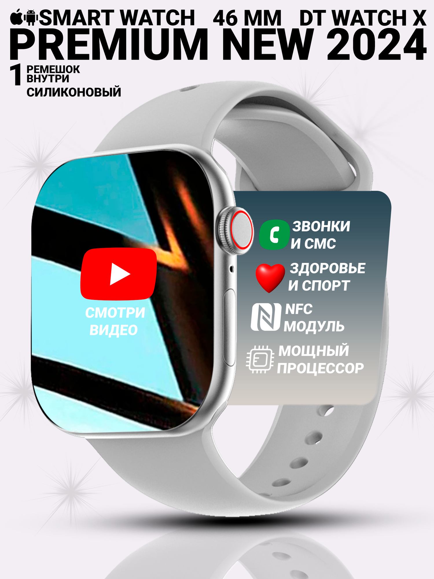 Умные часы DT WATCH X, Premium Pro Smart Watch 46 мм — NFC, HD AMOLED, Смарт-часы мужские и женские серебристые интересное: