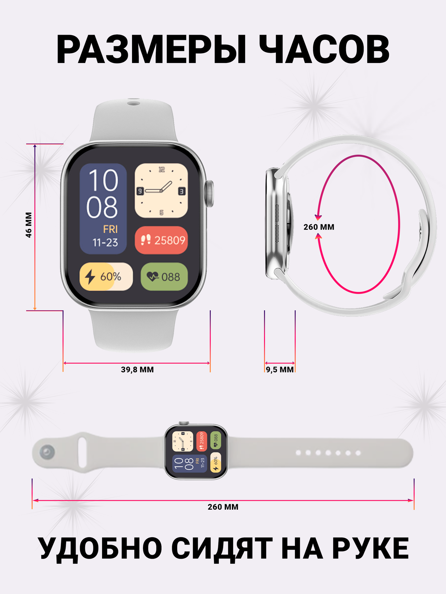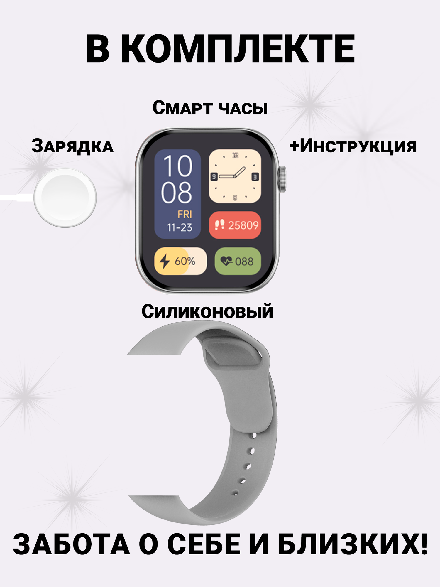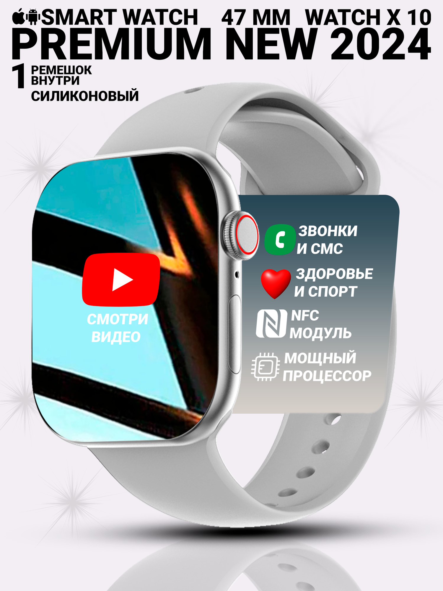 Умные часы Smart Watch X10, Смарт часы watch X, premium smart watch, 47 мм с NFC и магнитной зарядкой, Серебристый интересное: