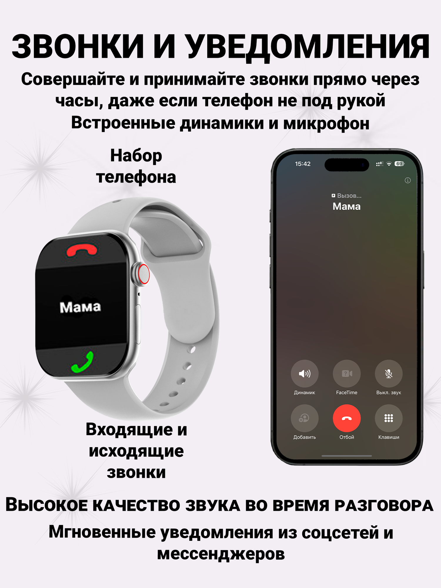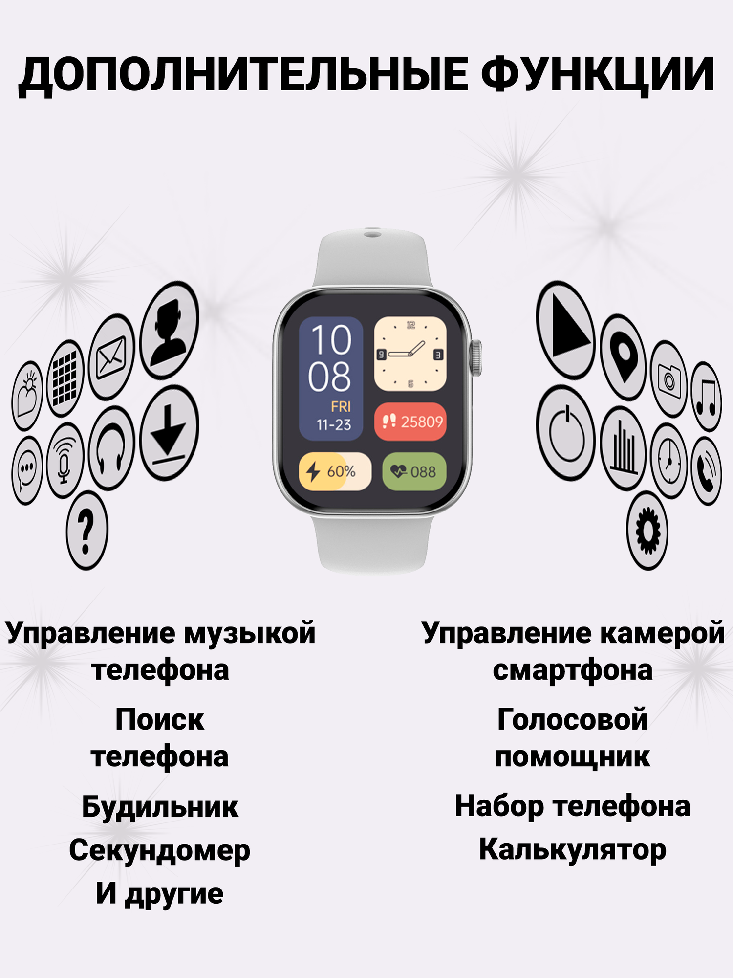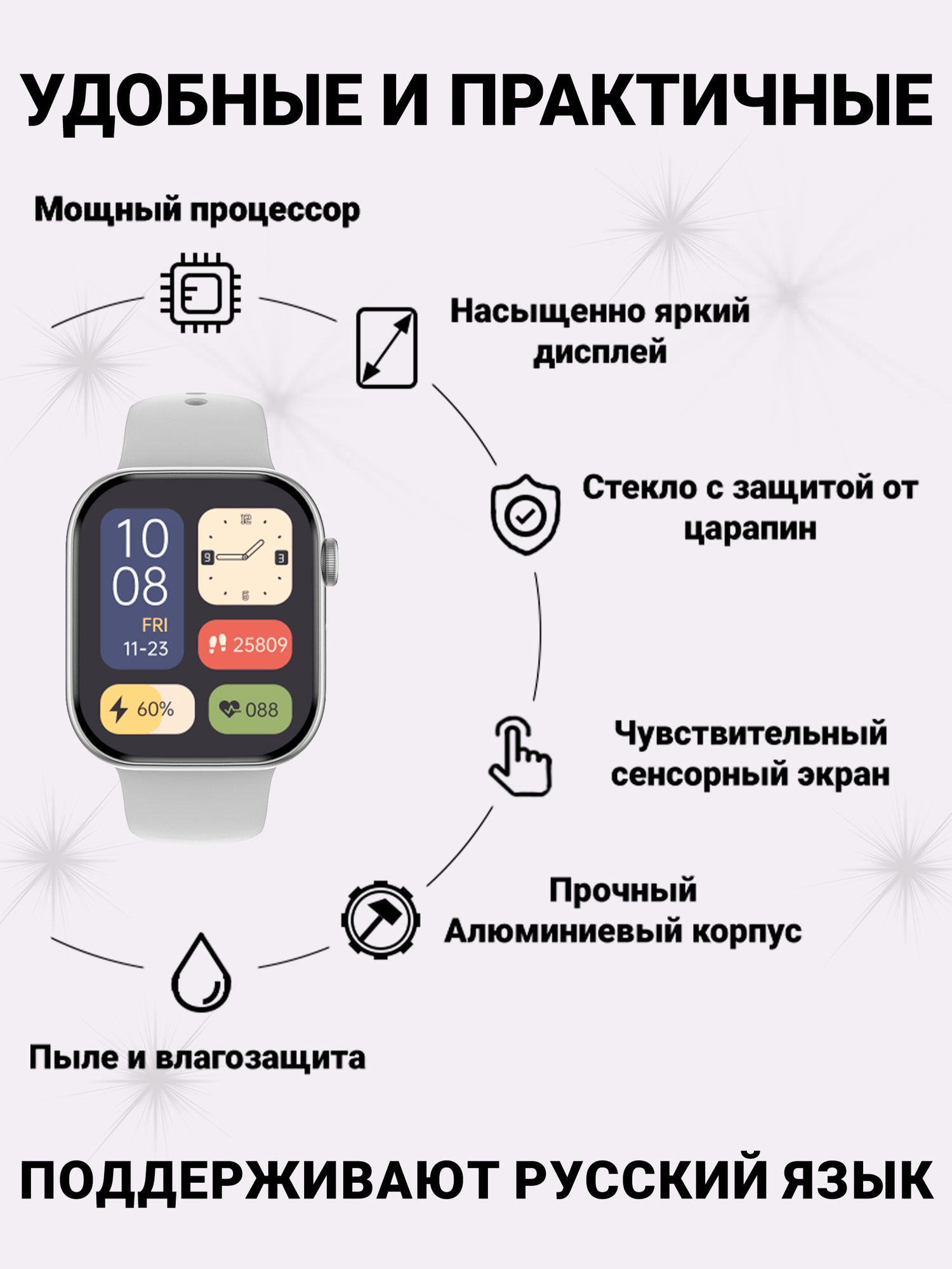 Умные часы Smart Watch X10, Смарт часы watch X, premium smart watch, 47 мм с NFC и магнитной зарядкой, Серебристый интересное: