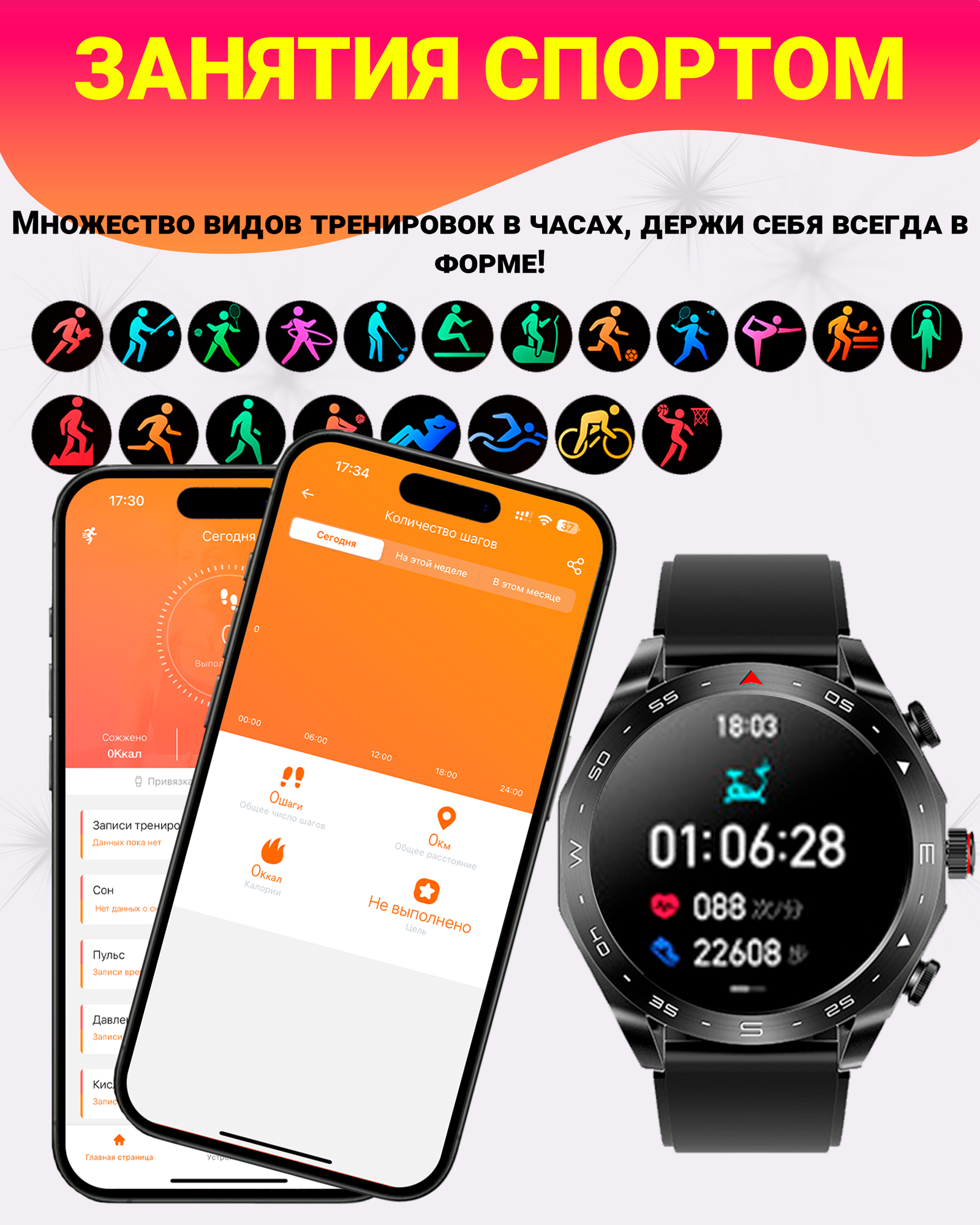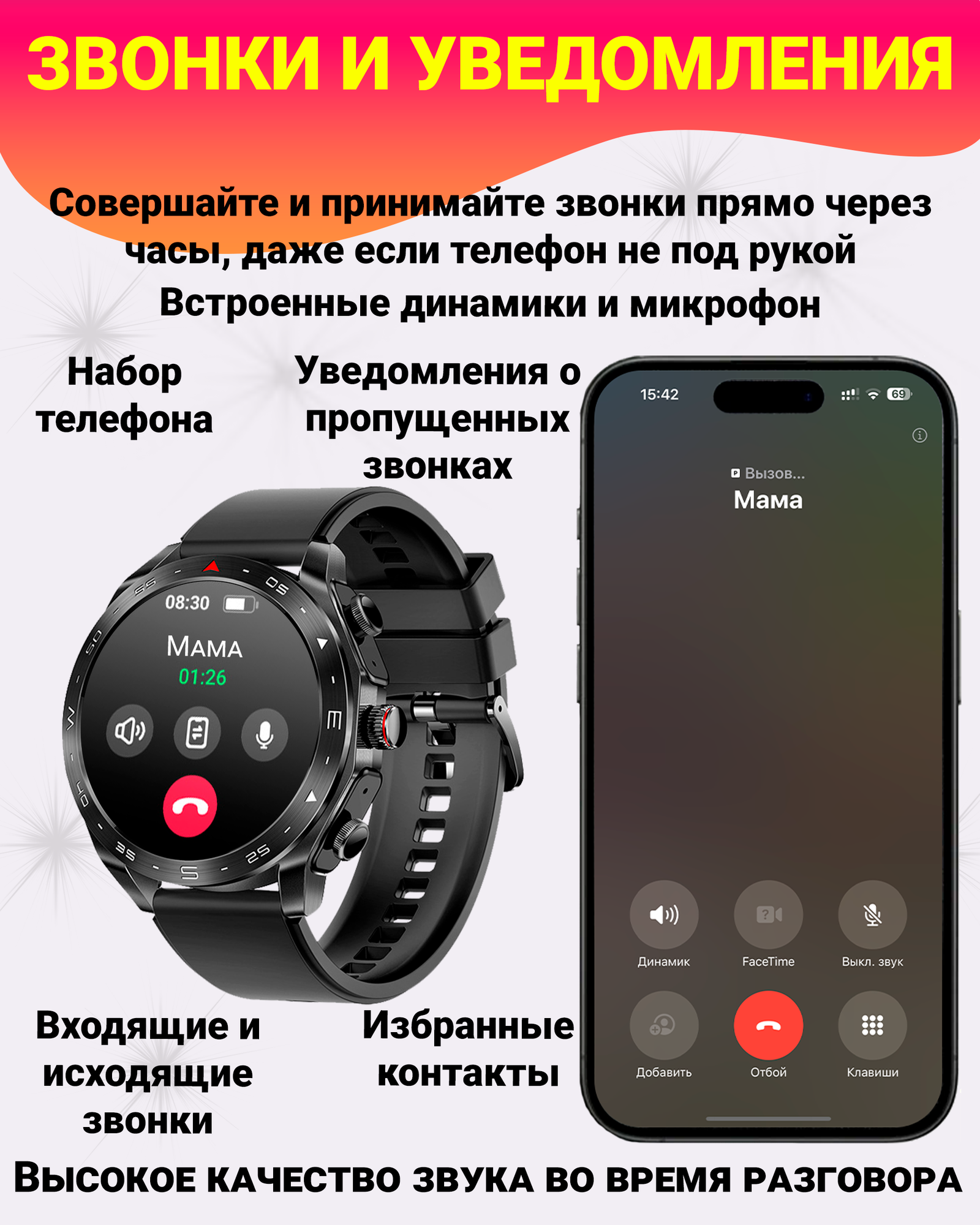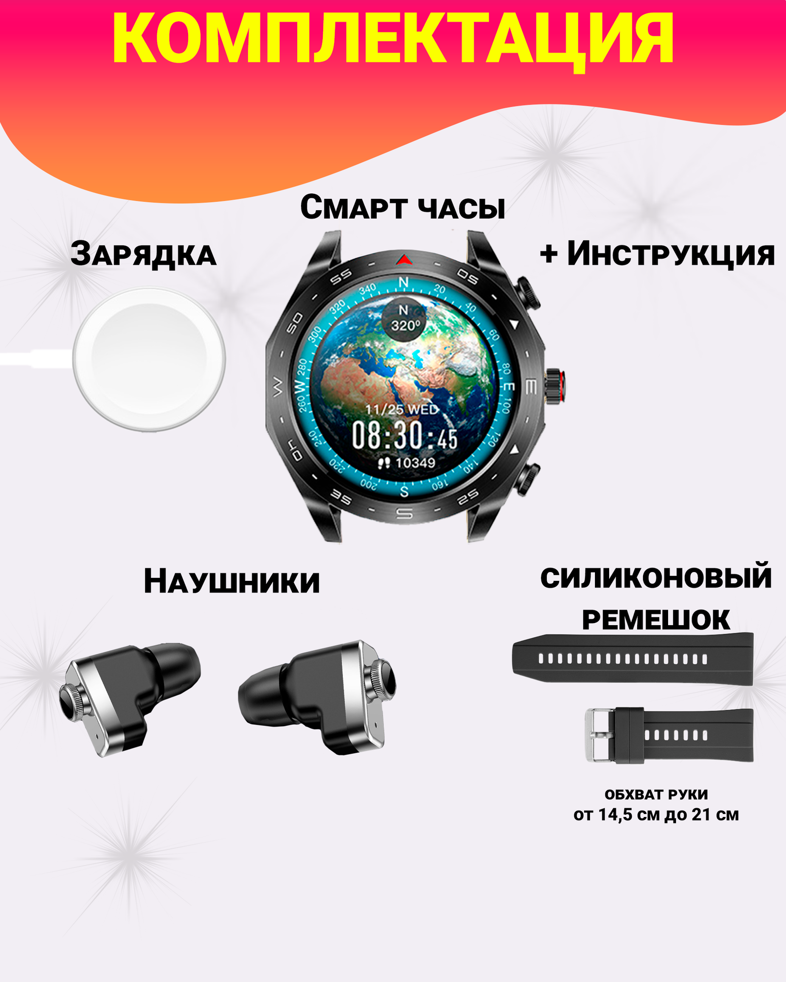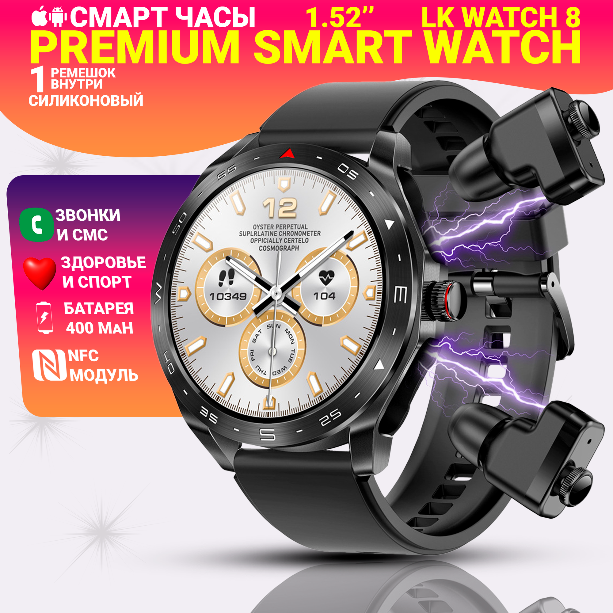 Смарт часы с IPS экраном, smart watch, встроенные беспроводные наушники, мониторинг здоровья, NFC, черный интересное: