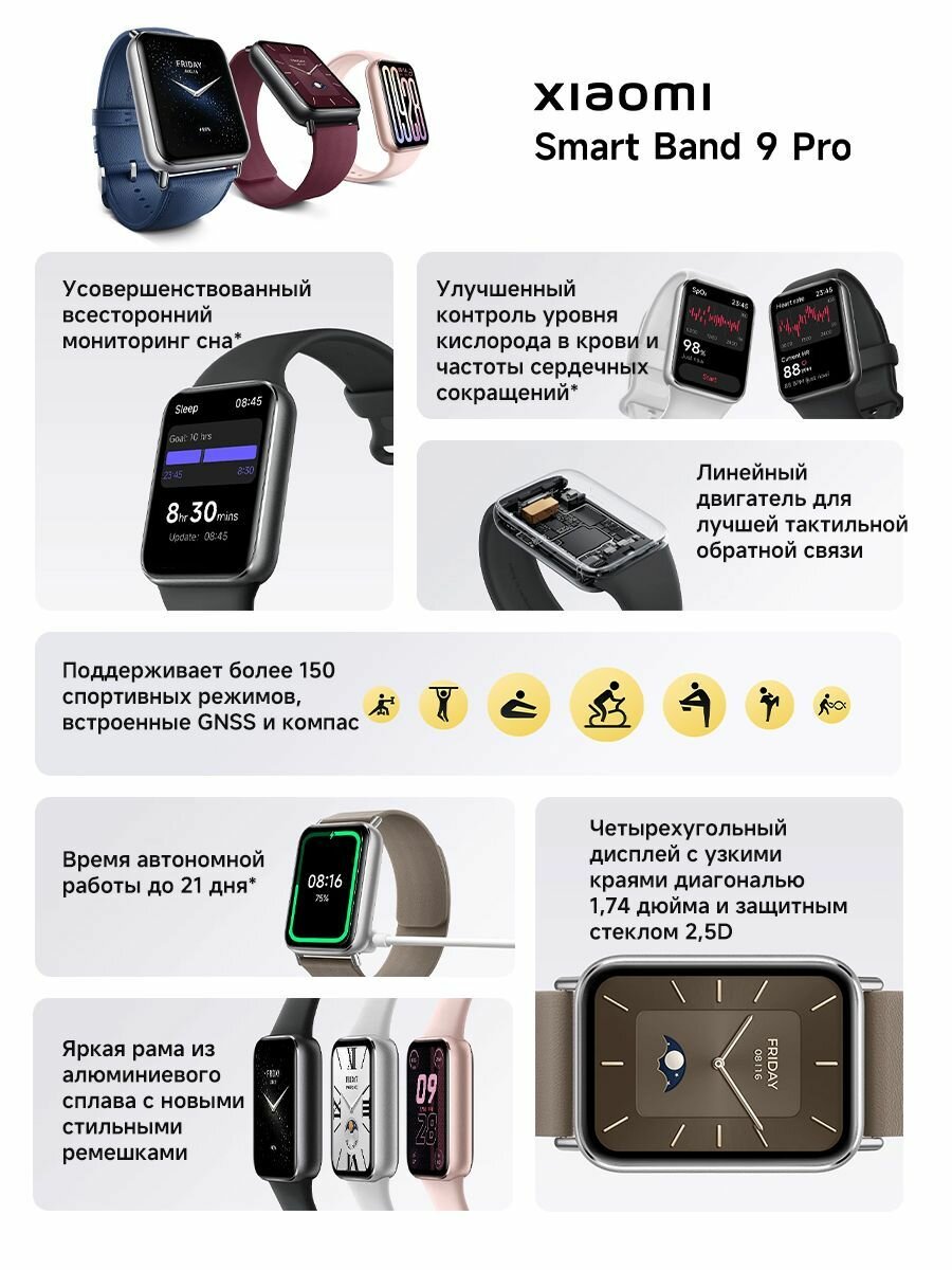 Xiaomi Фитнес-браслет Mi Smart Band 9 Pro Глобальная версия, Дисплей 1,74', Bluetooth 5.4, Поддержка GNSS
