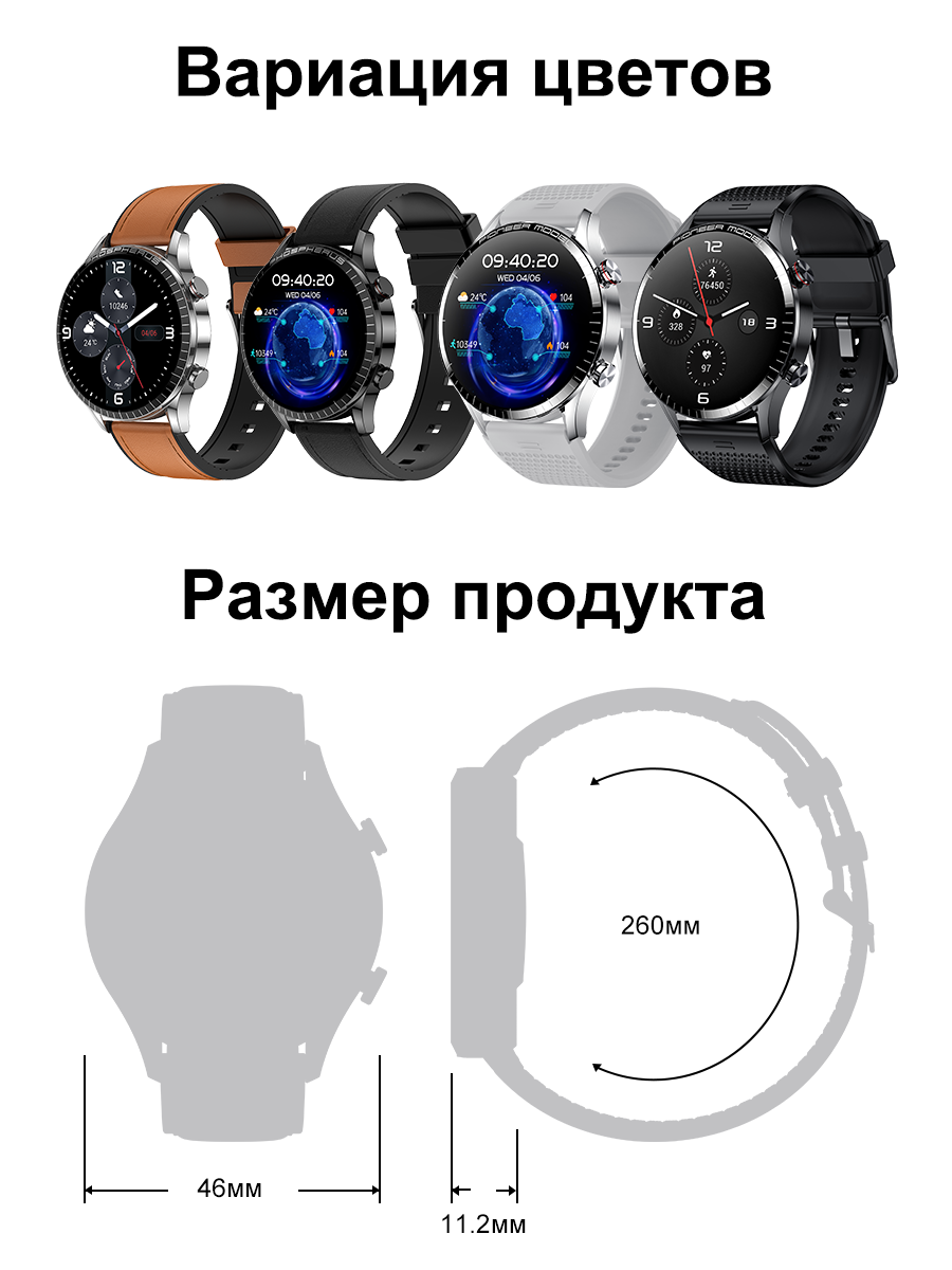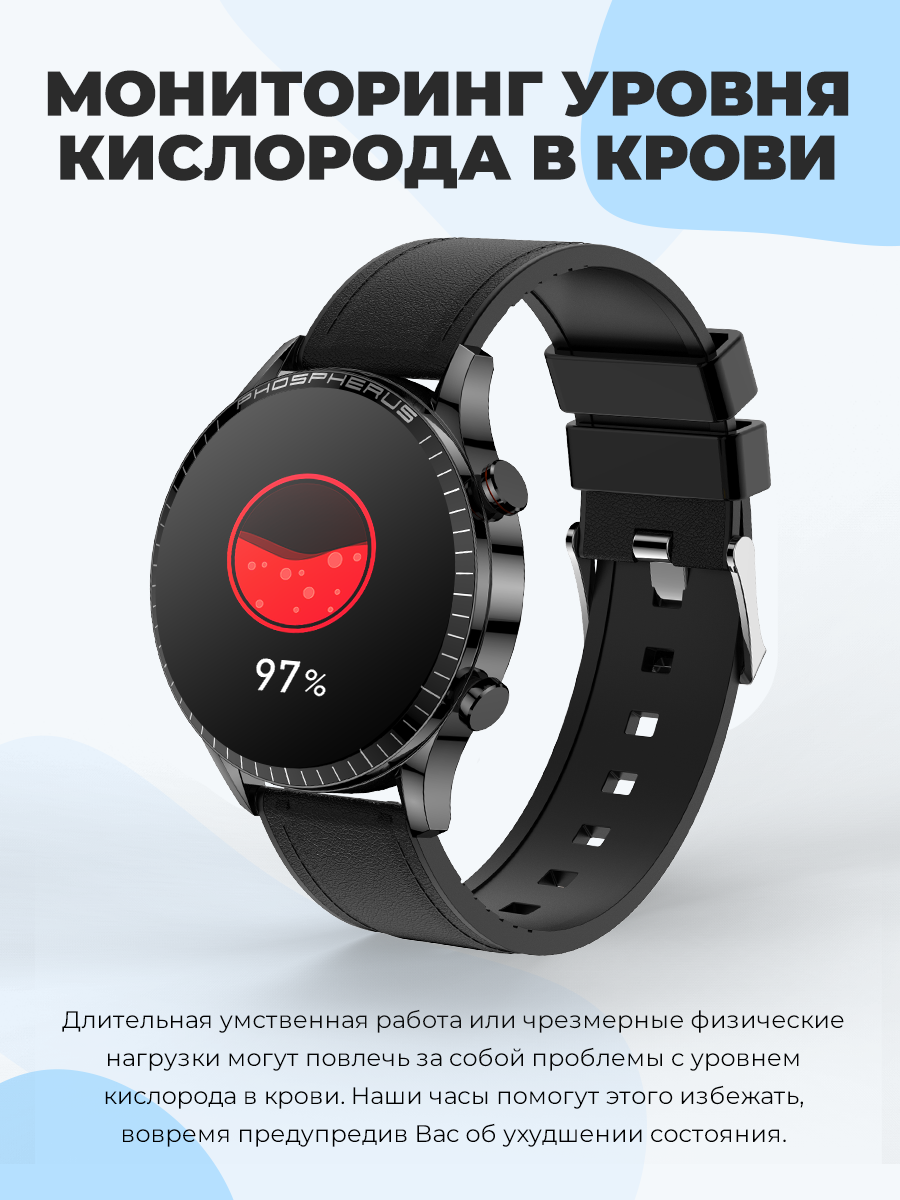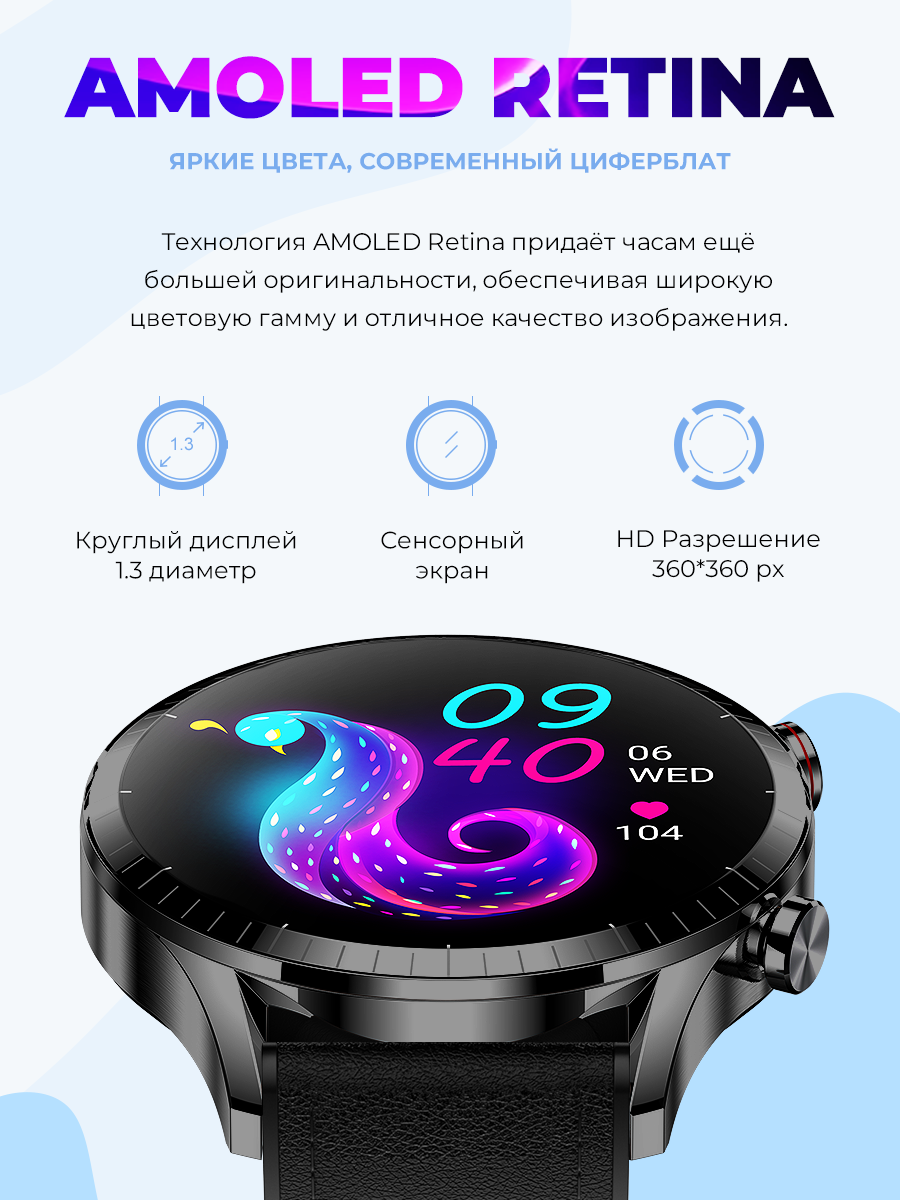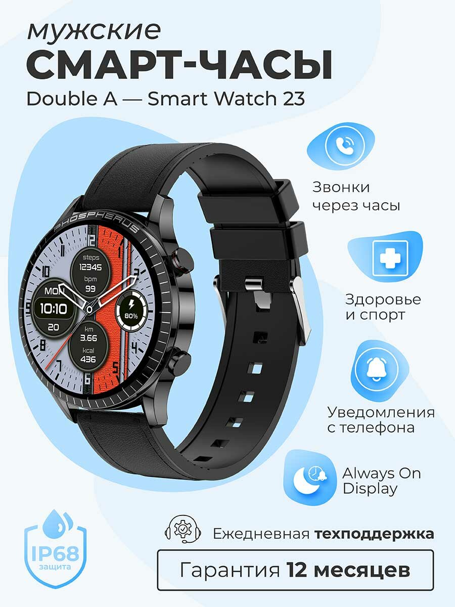 Умные Cмарт часы Double A Smart Watch Smart Watch 23 AMOLED мужские наручные круглые водонепроницаемые, черные кожаные интересное: