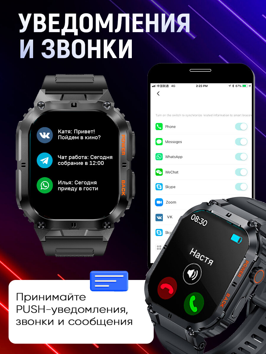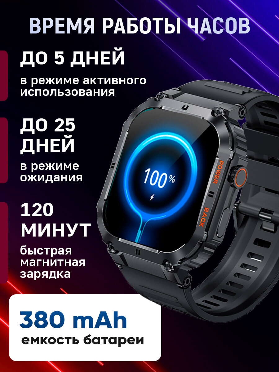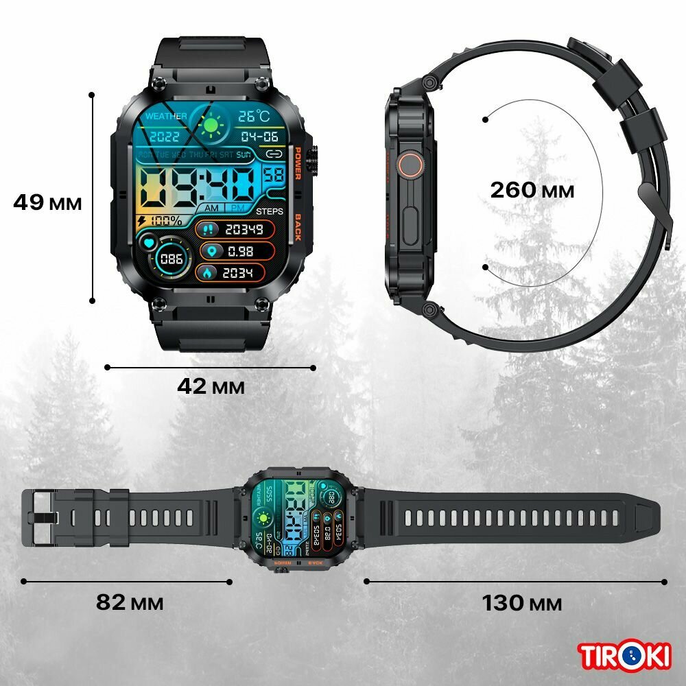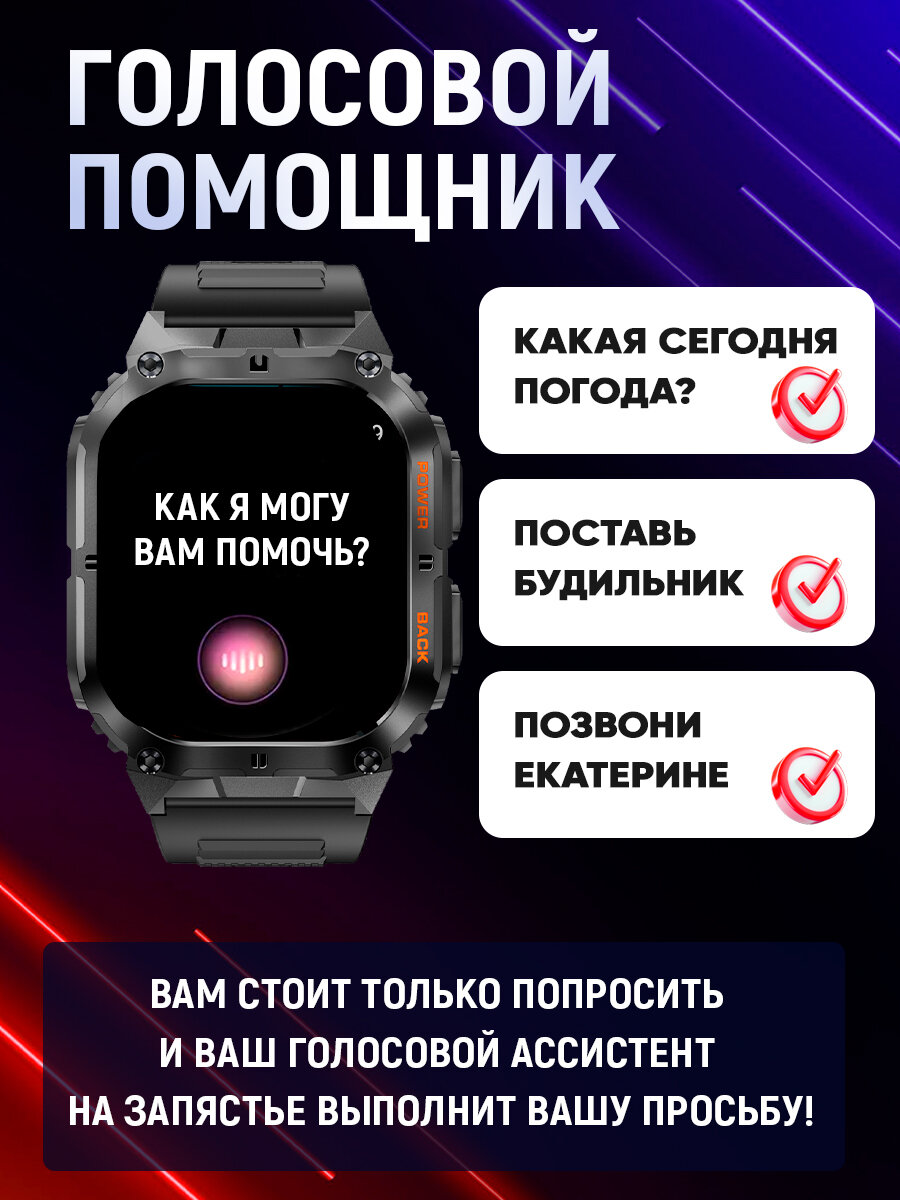 Спортивные мужские смарт часы Tiroki K63 с голосовым ассистентом, Bluetooth звонком, Always on Display, компасом, мониторингом пульса, давления, шагомером, счетчиком калорий. Умные часы для мужчин