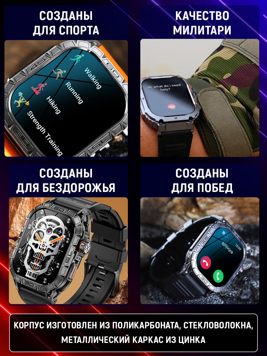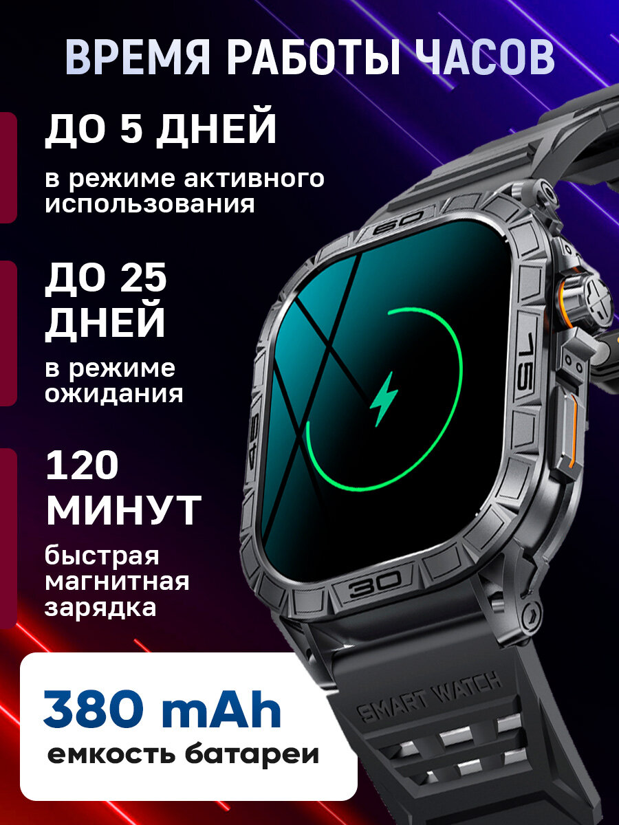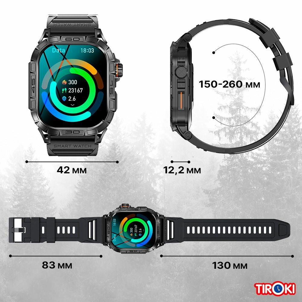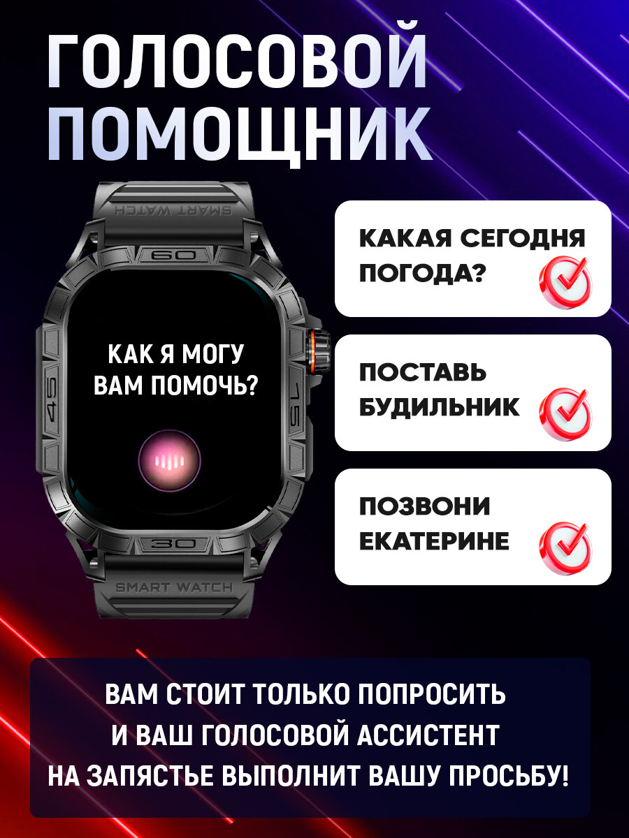 Спортивные мужские смарт часы Tiroki K63 с голосовым ассистентом, Bluetooth звонком, Always on Display, компасом, мониторингом пульса, давления, шагомером, счетчиком калорий. Умные часы для мужчин