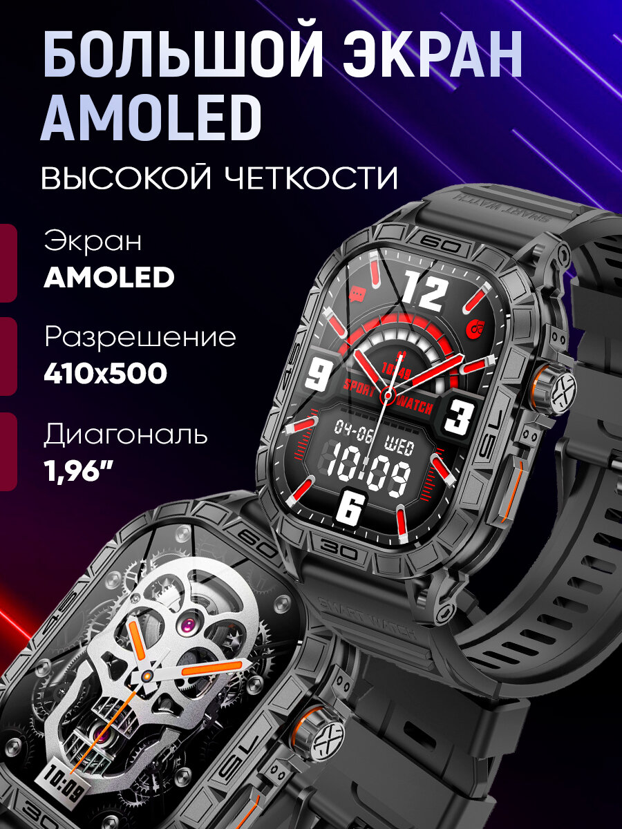 Смарт часы мужские / K64 AMOLED 1,96"/ Умные спортивные наручные фитнес / измерение кислорода, давления, пульса, шагомер