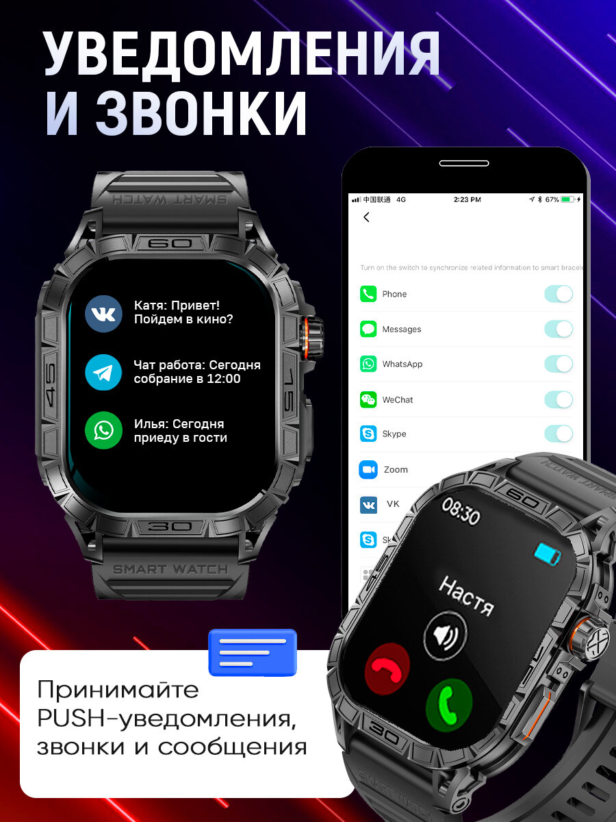 Смарт часы мужские / K63 AMOLED 1,96"/ Умные наручные спорт smart watch / Фитнес с давлением, пульс, шагомер интересное: