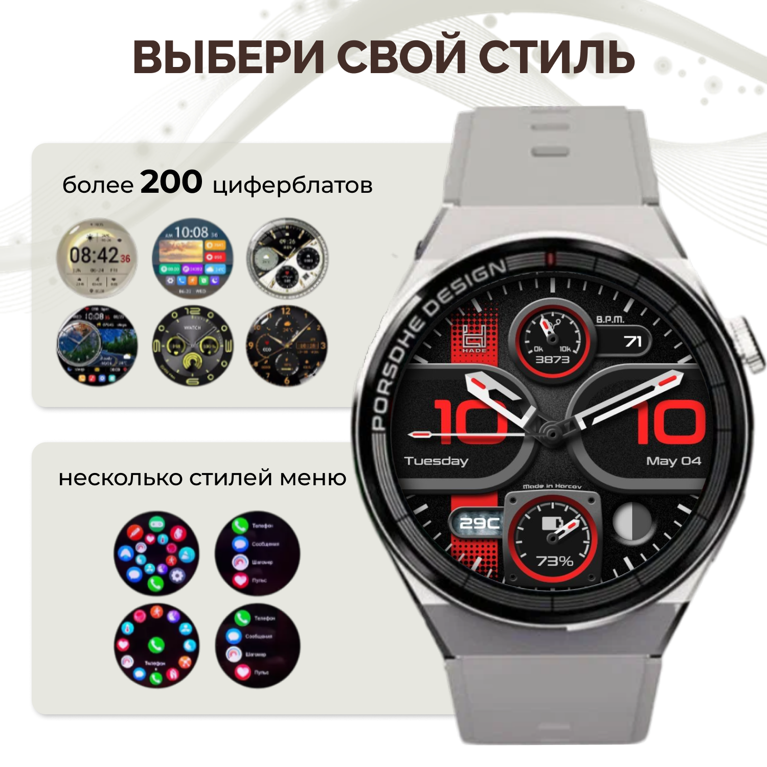 Умные часы HW3 CYBER Smart Watch 46 MM, 1.32 AMOLED, IP68, iOS, Android, Bluetooth звонки, Уведомления, Шагомер, Cеребристый