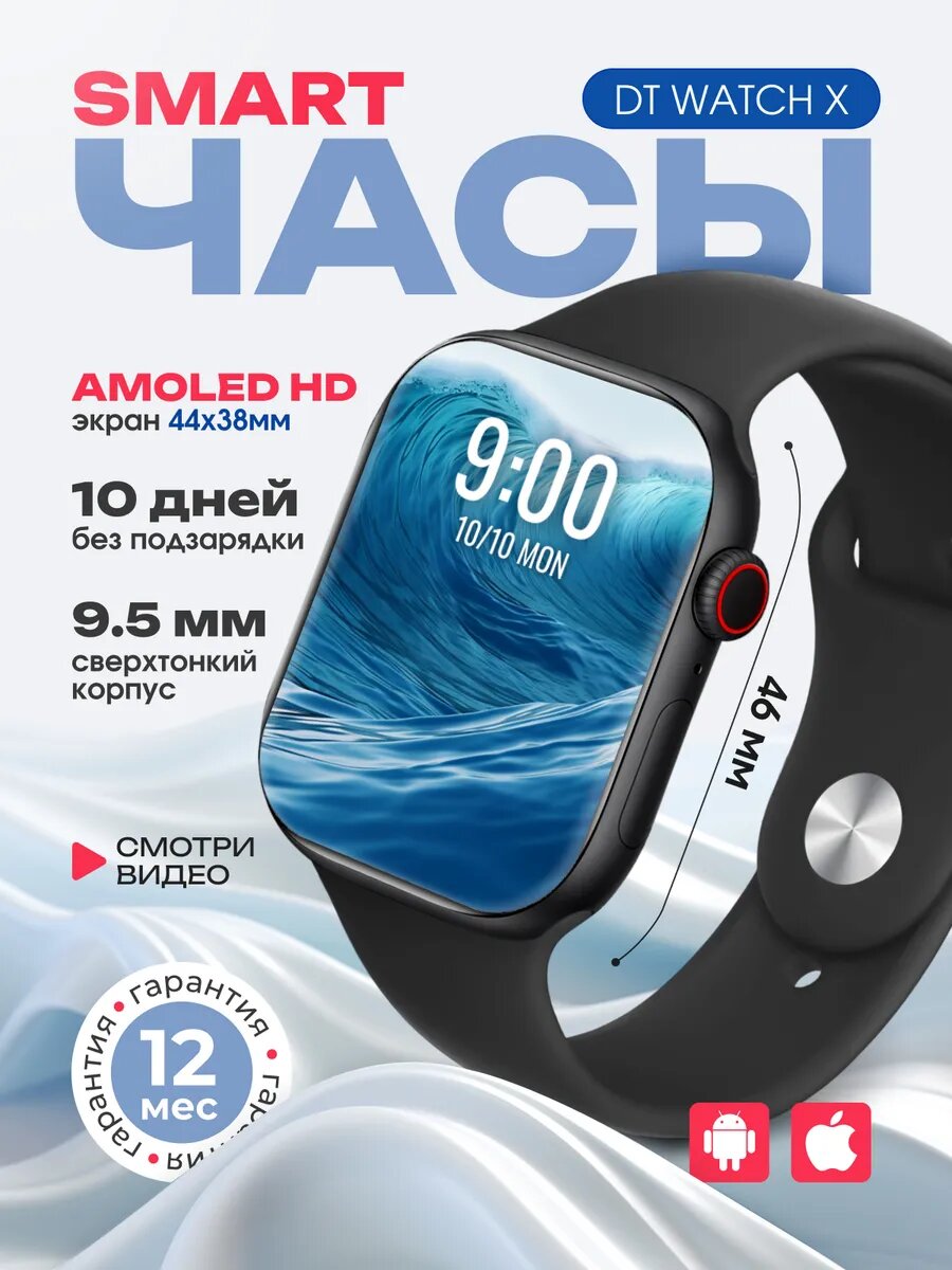 Смарт-часы DT Watch X (10), 46 мм, NFC, AMOLED-дисплей, 2 ремешка в комплекте, Черный интересное:
