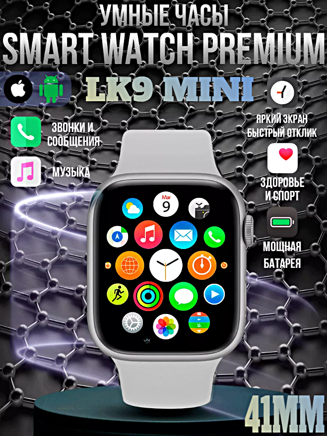 Смарт часы LK9 MINI Умные часы 41MM PREMIUM Series Smart Watch AMOLED, iOS, Android, Bluetooth звонки, Cеребристый интересное: