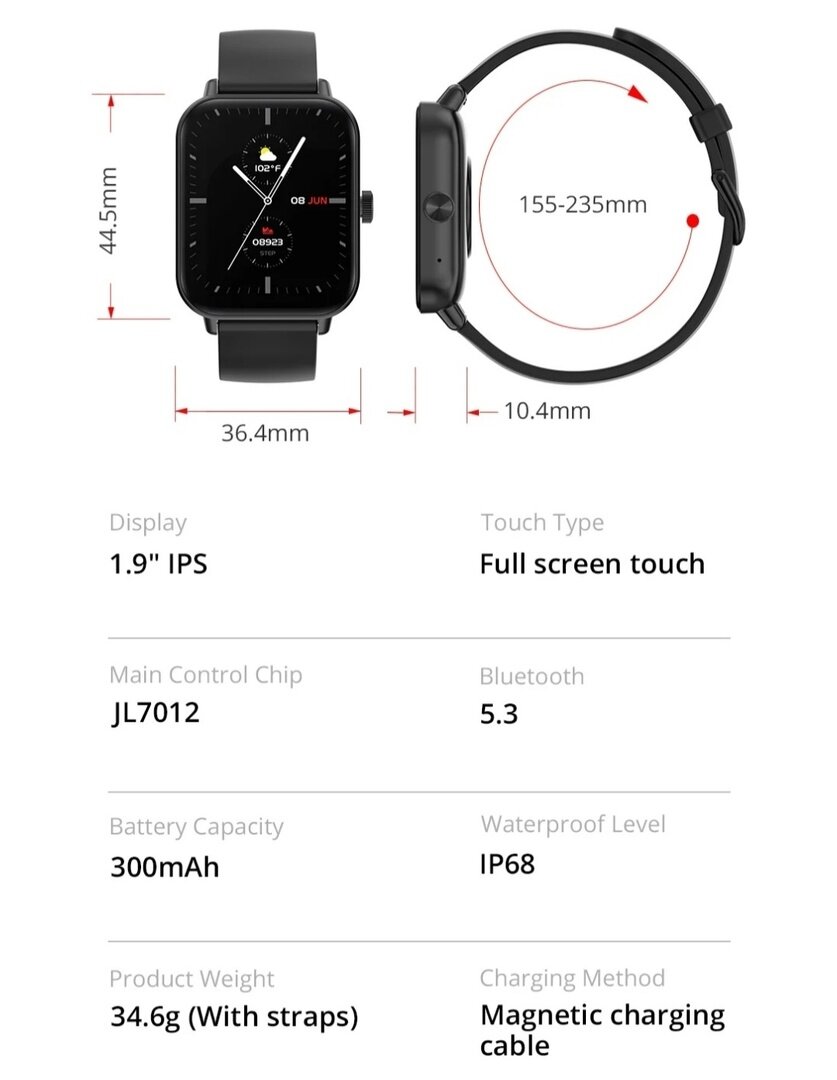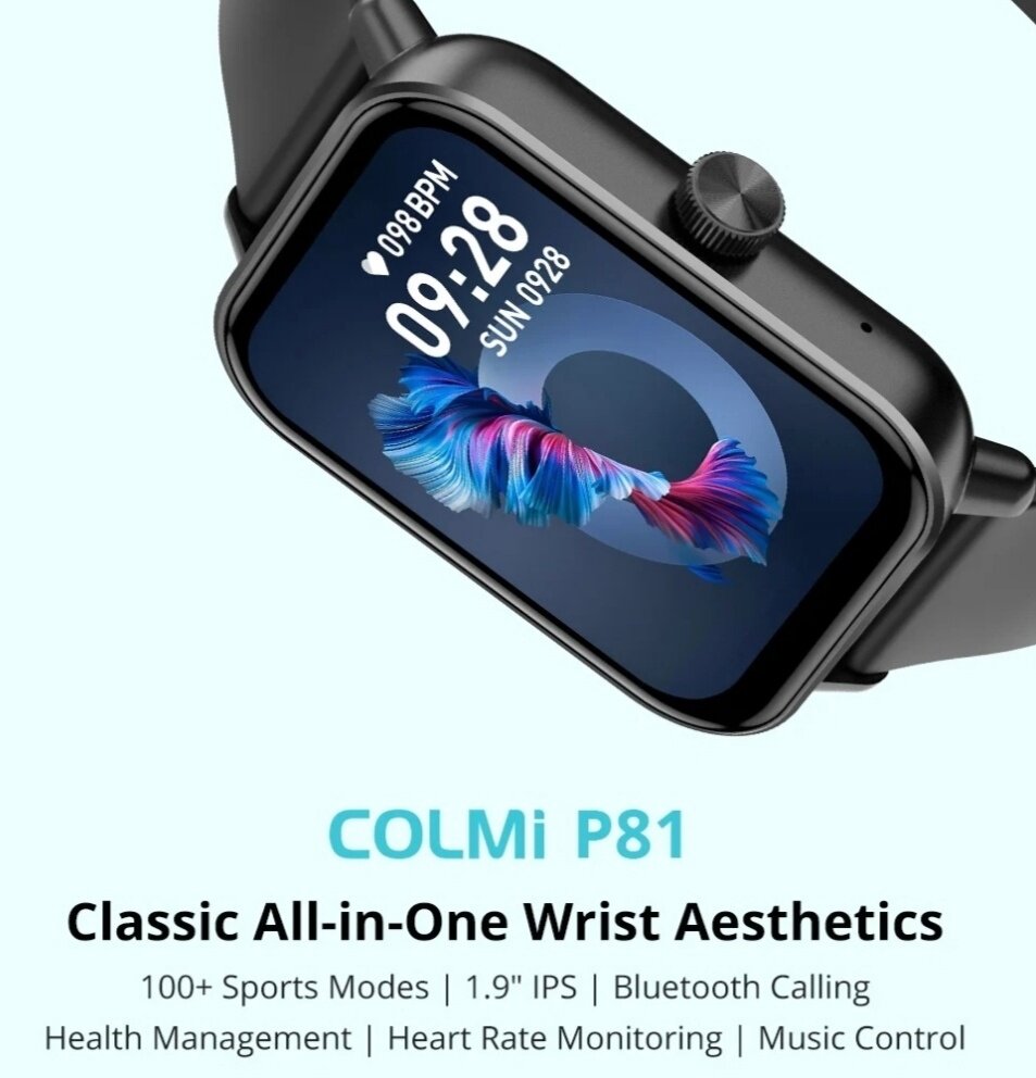 Умные смарт-часы COLMI P81 с голосовым вызовом, IP68, водостойкие цвет черный