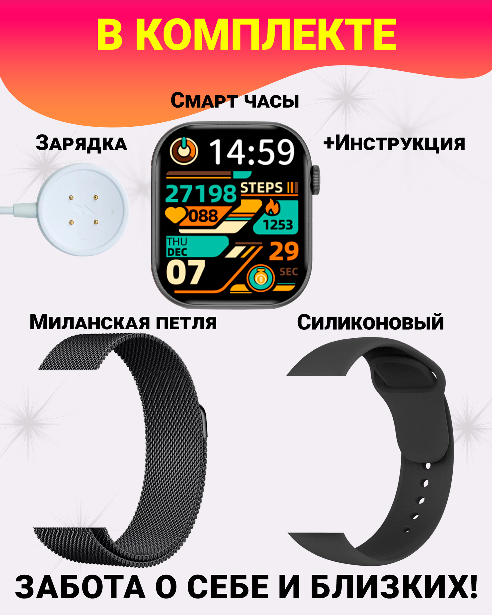 СохранитьУмные смарт часы DT WATCH 10 (X), watch 10, premium smart watch, 46 мм с NFC, 2 ремешка, Черный интересное: