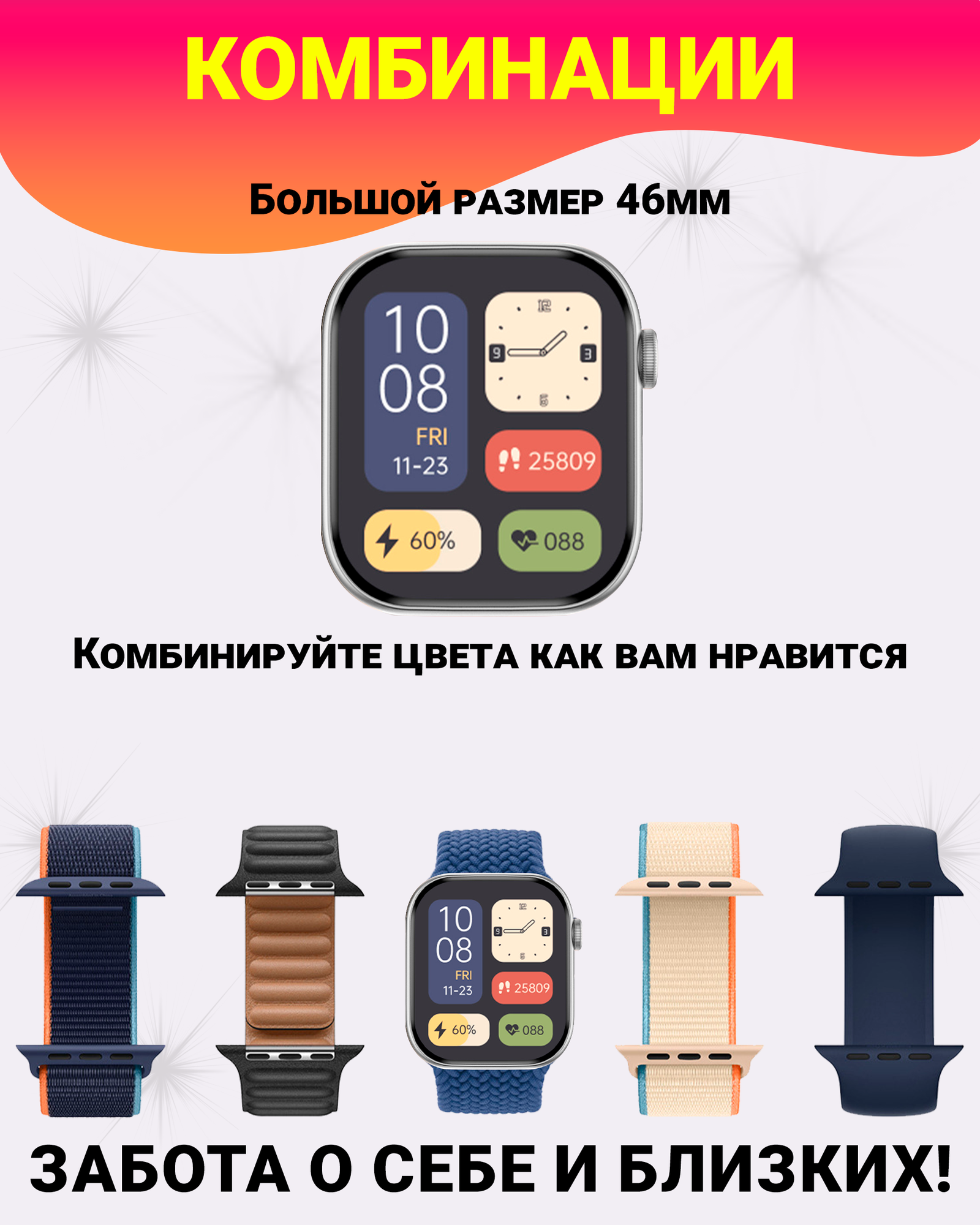 СохранитьУмные смарт часы DT WATCH 10 (X), watch 10, premium smart watch, 46 мм с NFC, 2 ремешка, Серебристый интересное:
