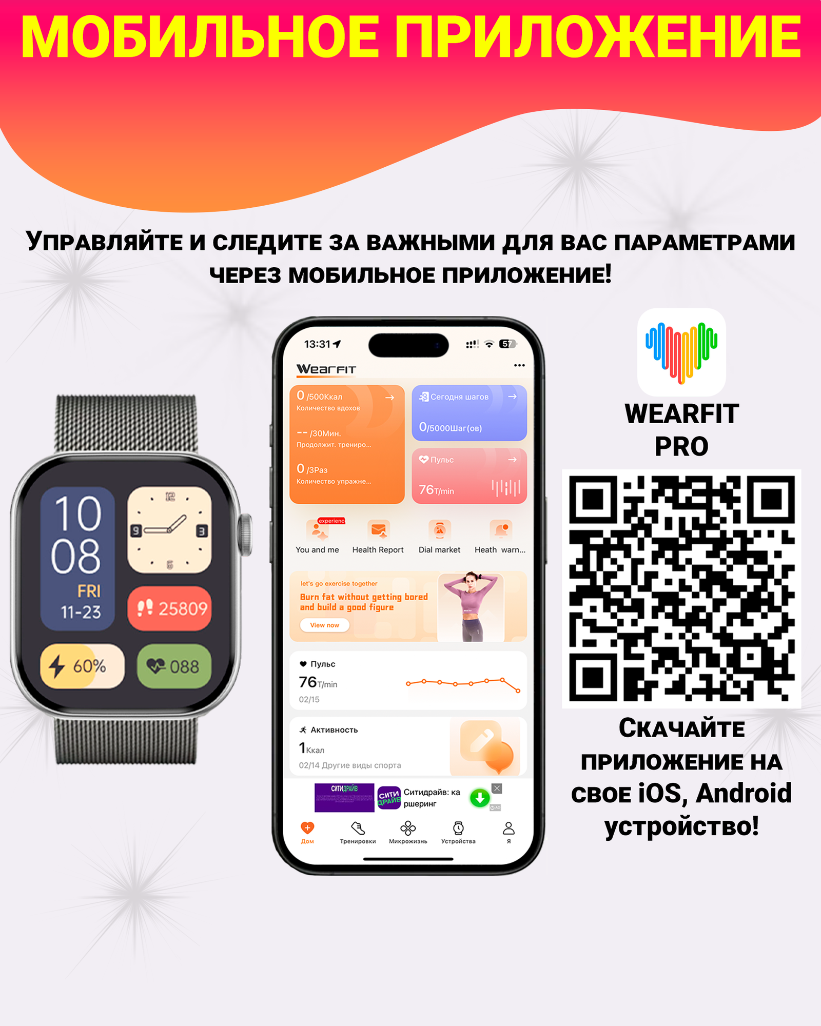 СохранитьУмные смарт часы WATCH X10, watch 10, premium smart watch, 47 мм с NFC, 2 ремешка, Серебристый интересное: