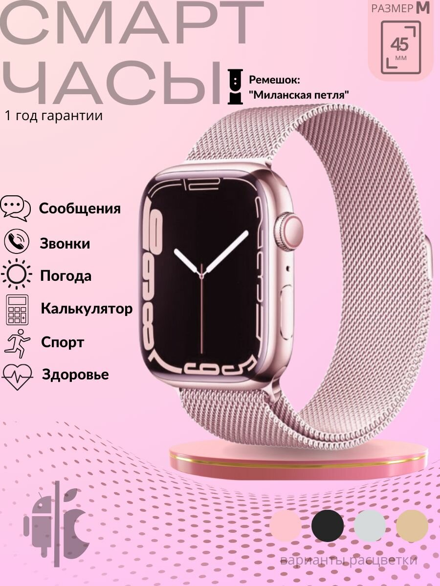 СохранитьСмарт часы женские розовые металлическим с ремешком "Миланская петля", умные часы мужские, Smart Watch для детей (детские), на Android (андроид) и iOS (iphone) интересное: