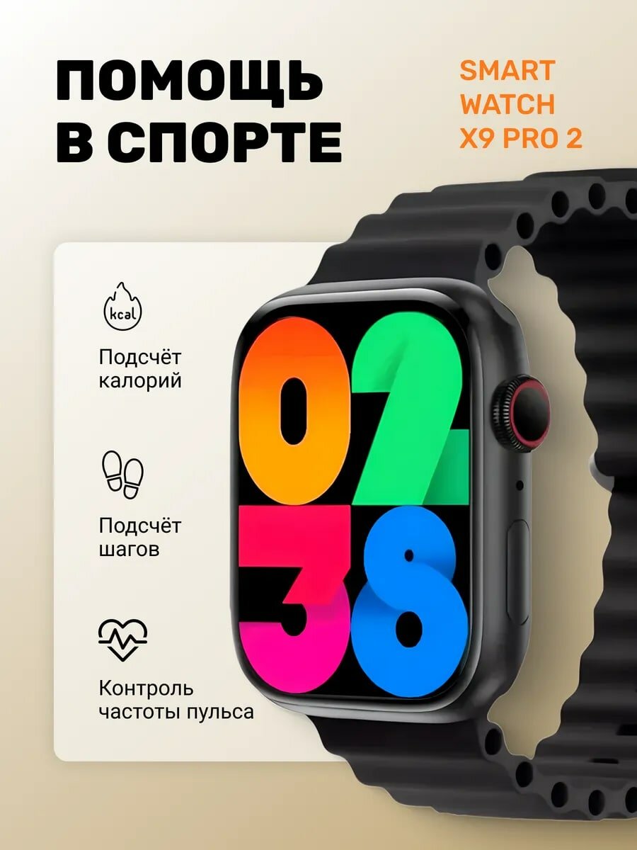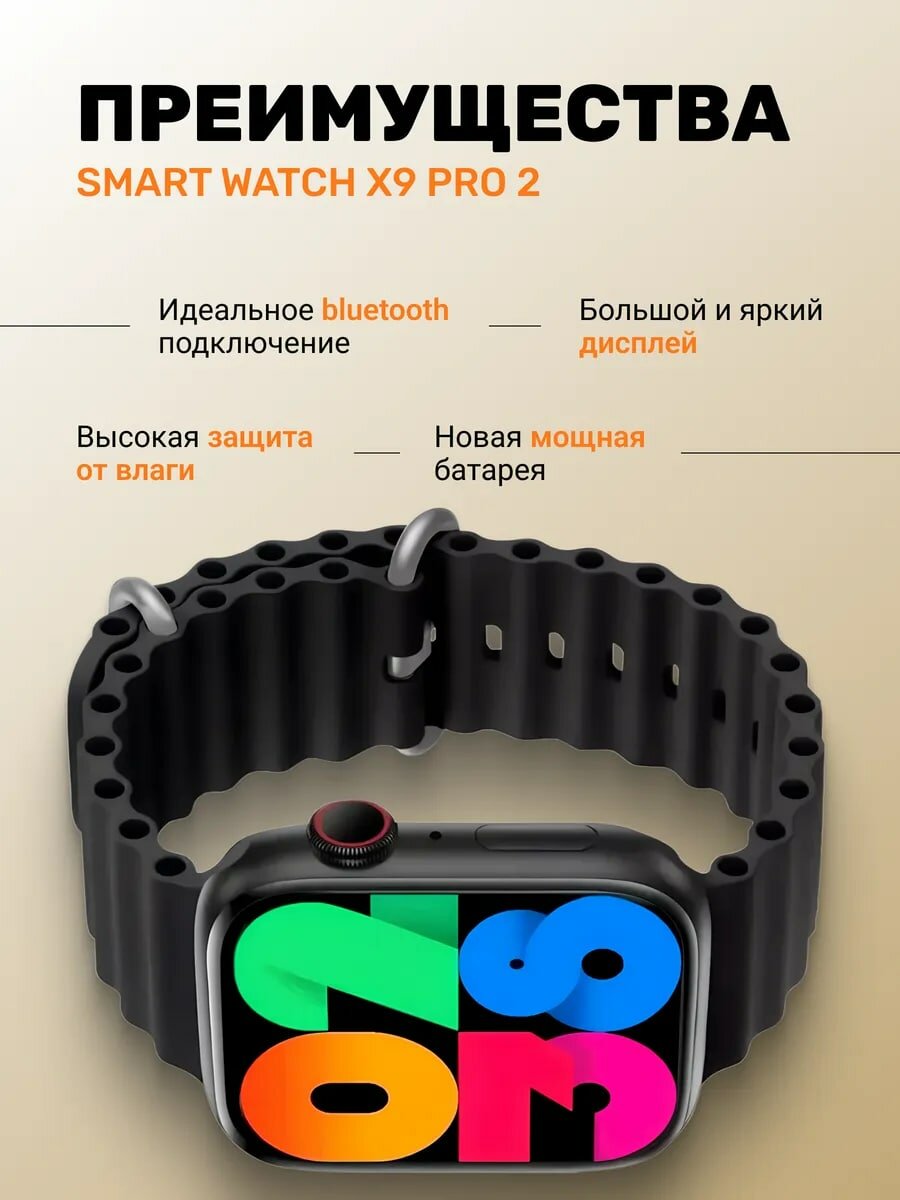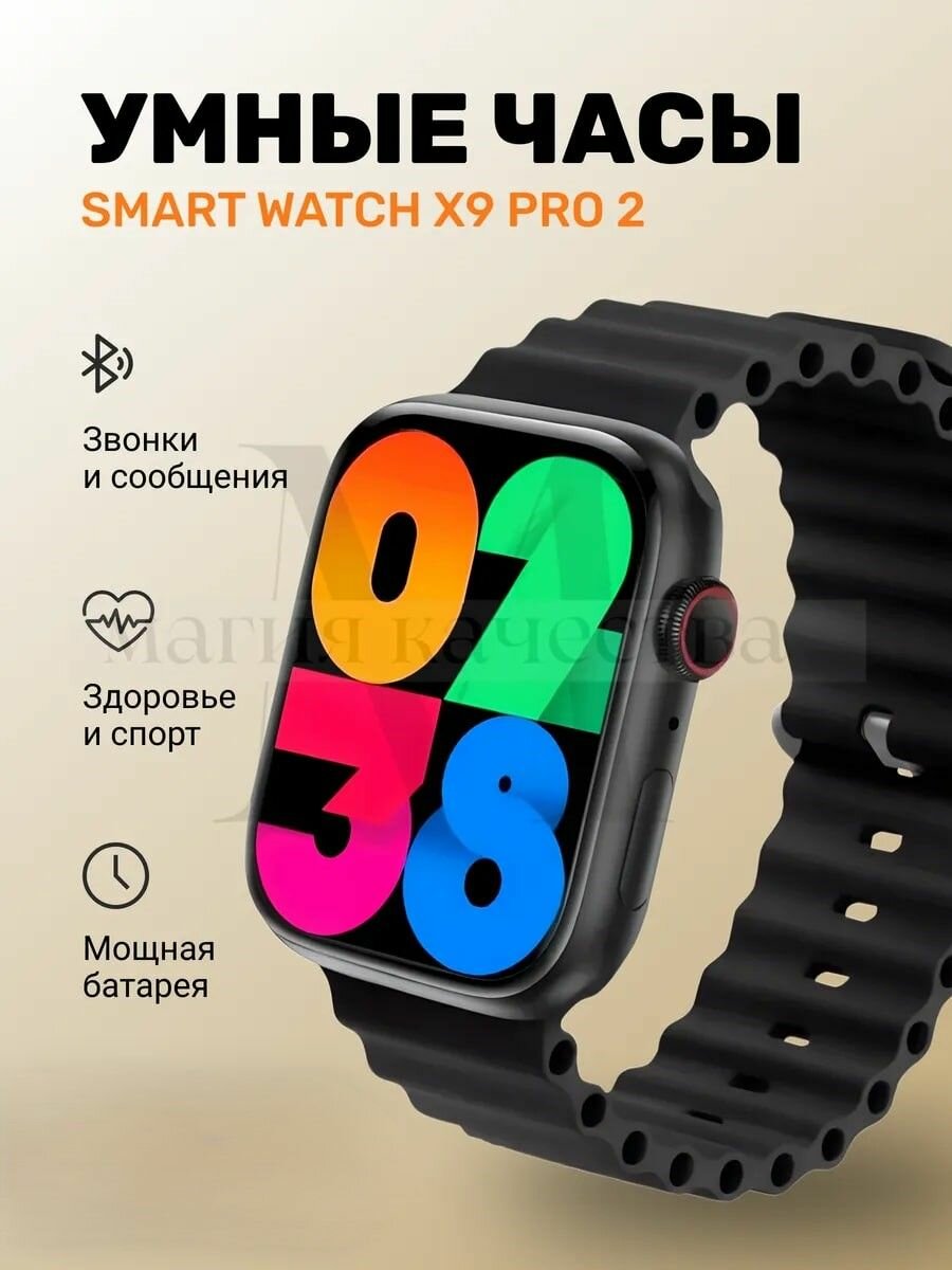 Смарт часы X9 Pro 2 мужские, женские, детские / Smart Watch 9 series электронные наручные фитнес 45 мм черные интересное: