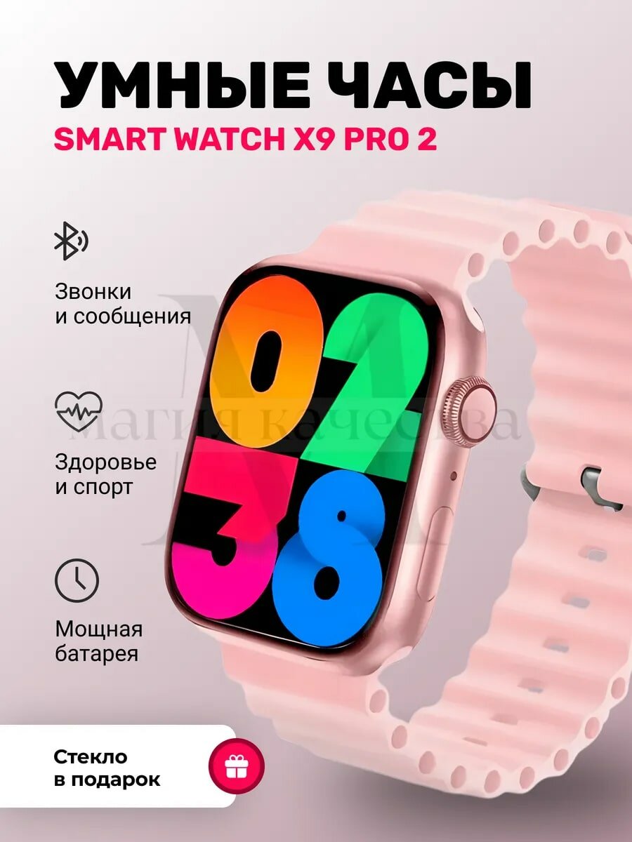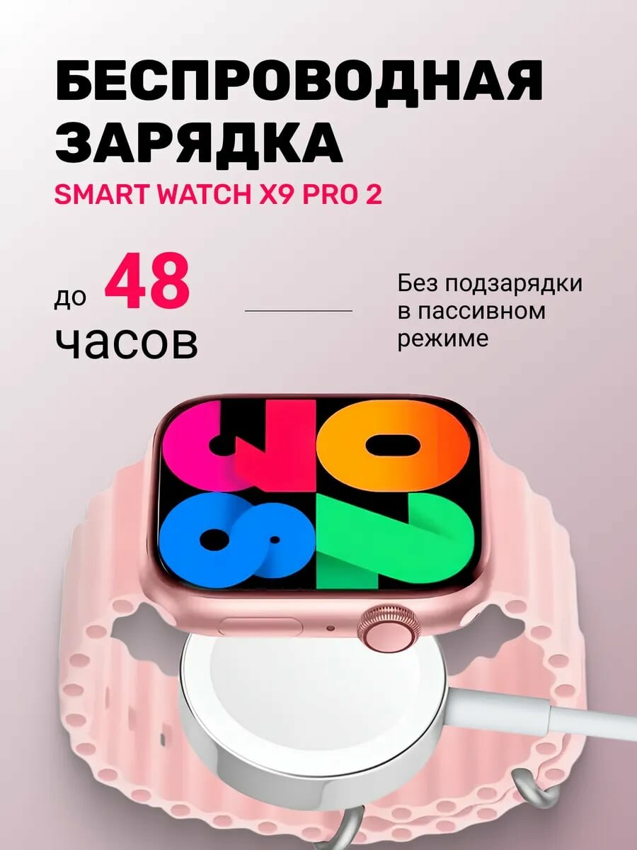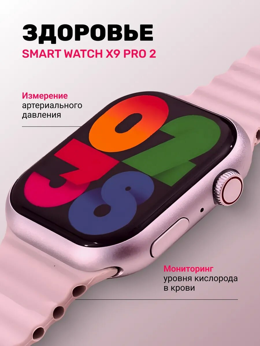 Смарт часы X9 Pro 2 мужские, женские, детские / Smart Watch 9 series электронные наручные фитнес 45 мм розовый интересное: