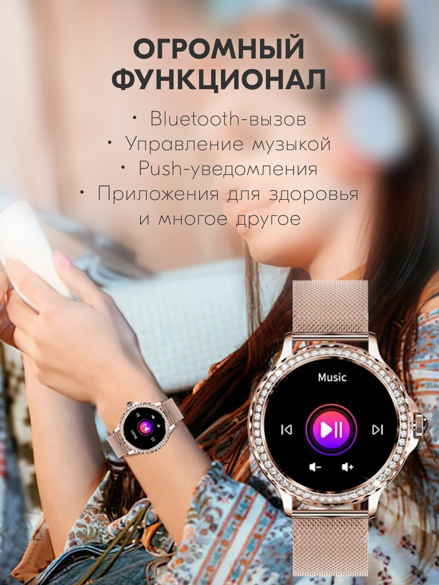 Умные смарт-часы ZDK KM30, с золотистым ремешком и сенсорным экраном, 1.39 дюйма