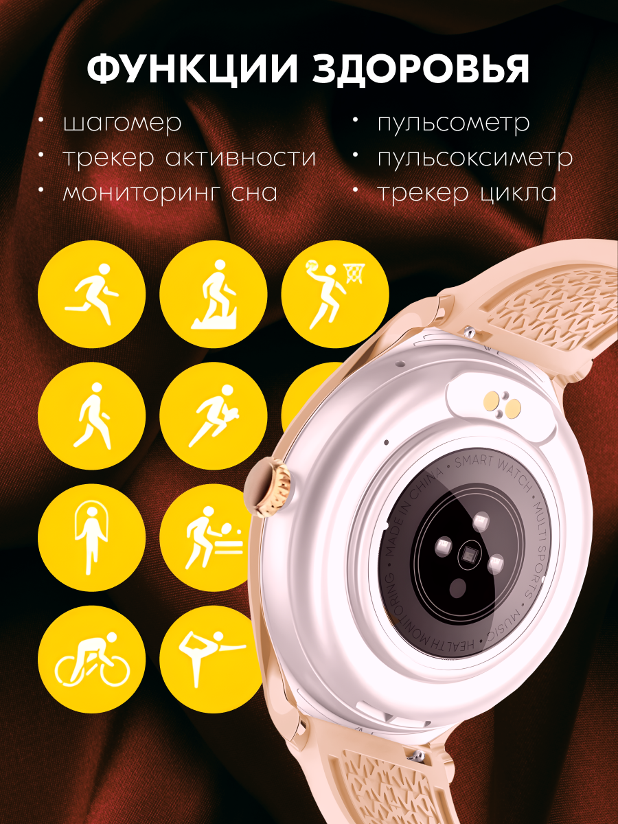 Умные смарт-часы ZDK KM30, с золотистым ремешком и сенсорным экраном, 1.39 дюйма интересное: