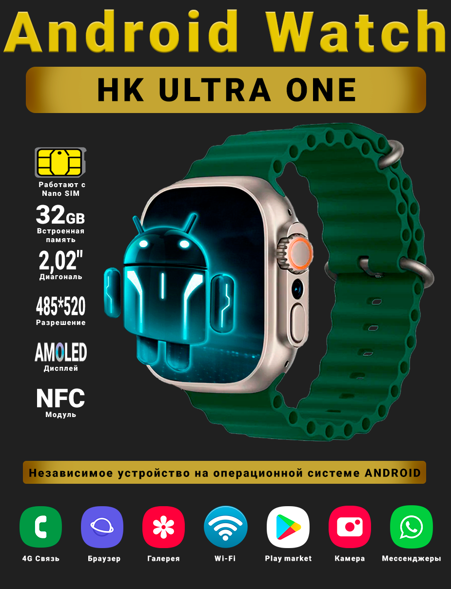 СохранитьУмные смарт часы PREMIUM Android Watch HK Ultra One 4G, Зеленый интересное: