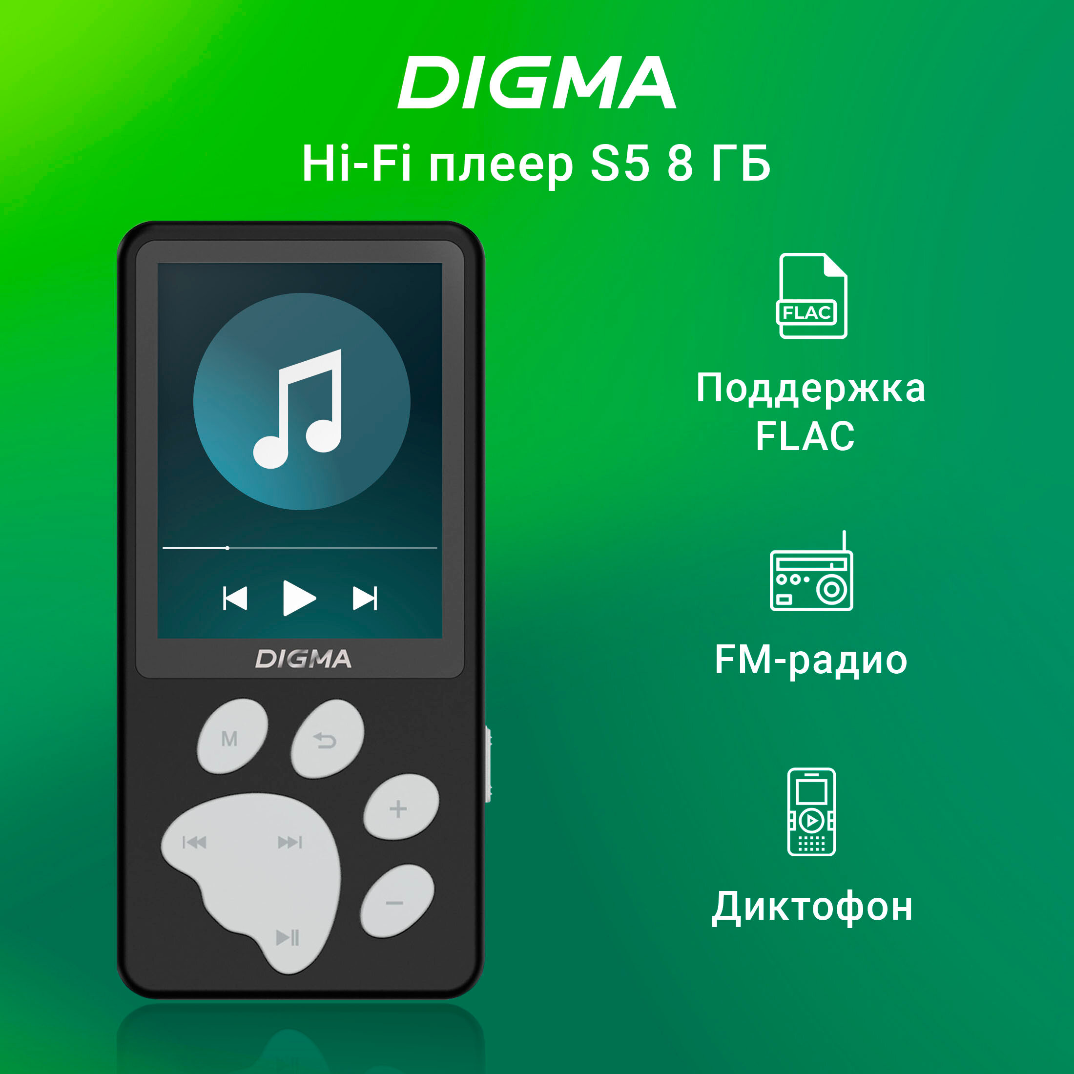 Плеер Digma S5 8ГБ черный/серый (s5b) интересное: