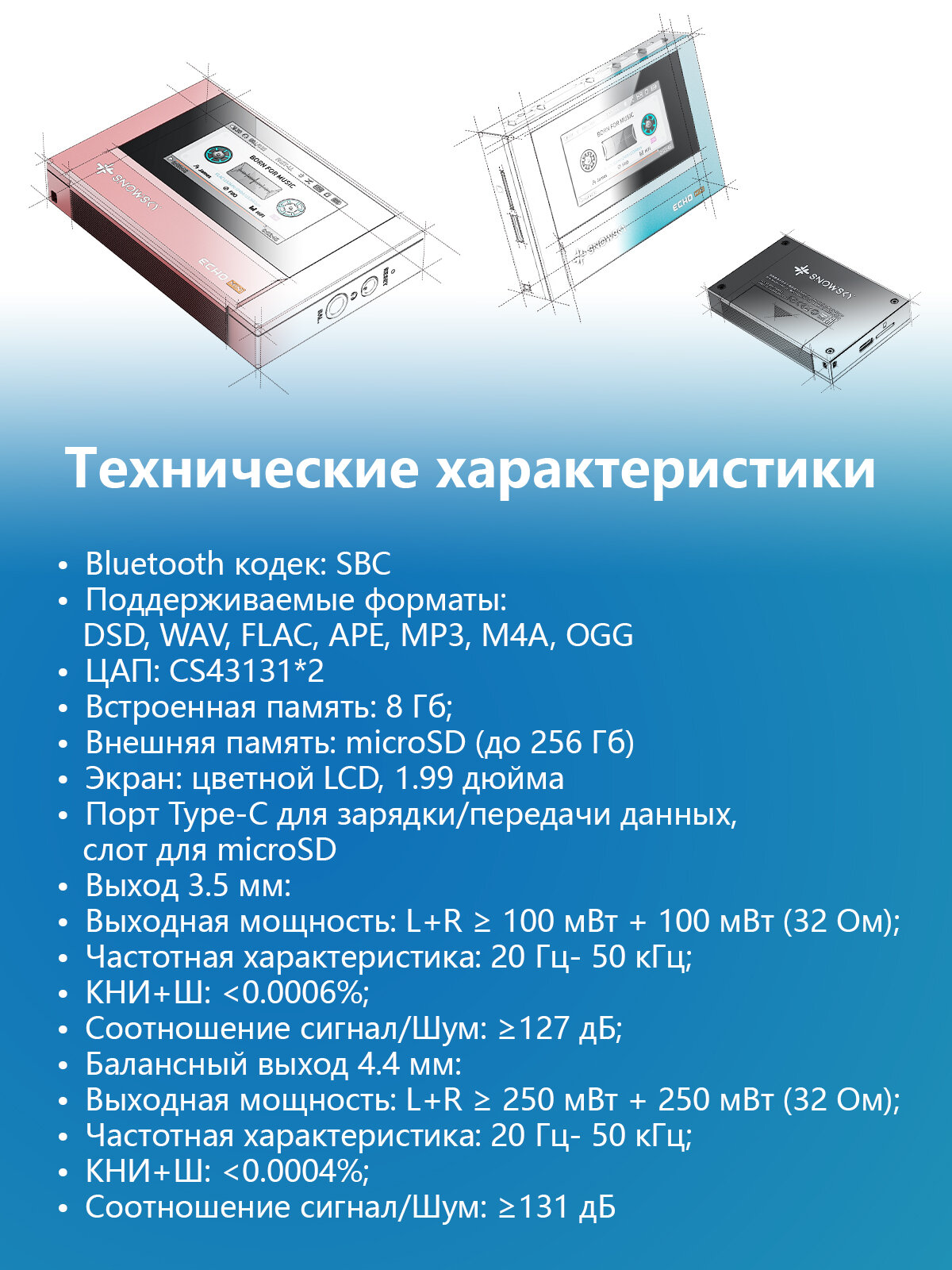 Аудиоплеер FIIO SNOWSKY ECHO MINI (F4401E) Sky Blue, Bluetooth SBC интересное: