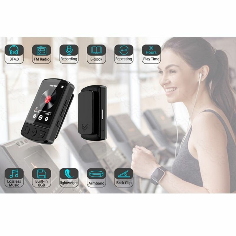 MP3-плеер Спорт МР3 Плеер, 64GB Черный, 1.77" Цветные Экран, 34g, Клипы, FM, Bluetooth 5.0 32 ГБ, черный интересное: