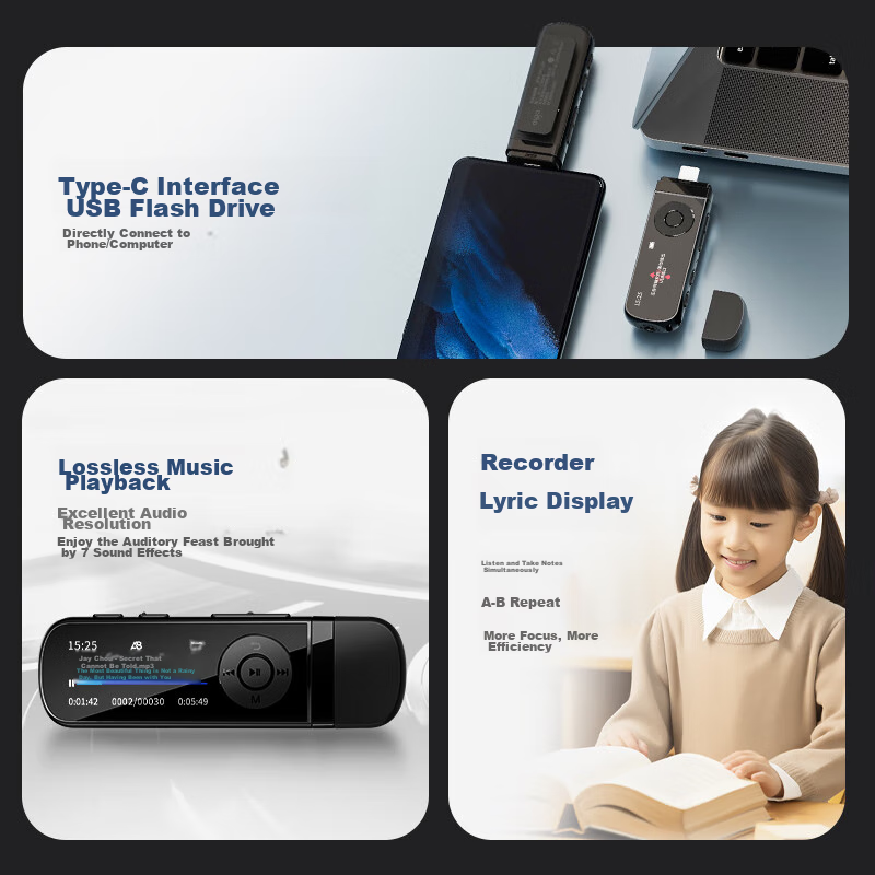 Цифрровой плеер Aigo MP3-100 64GB Portable MP3 Music Player, MP4 Bluetooth, Voice Recording, USB, black