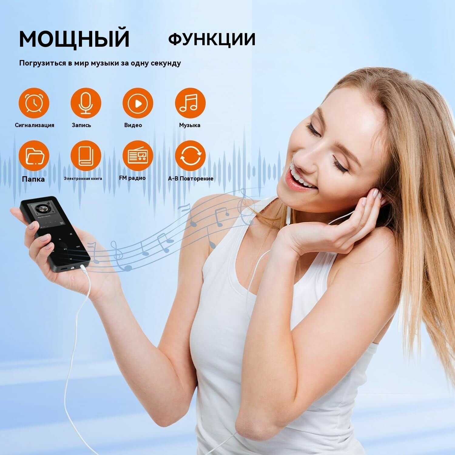 Купить MP3-плеер 80GB с Bluetooth 5.2, встроенный динамик, FM-радио, диктофон, читалка электронных книг, мини-дизайн, для спорта и бега (с наушниками)