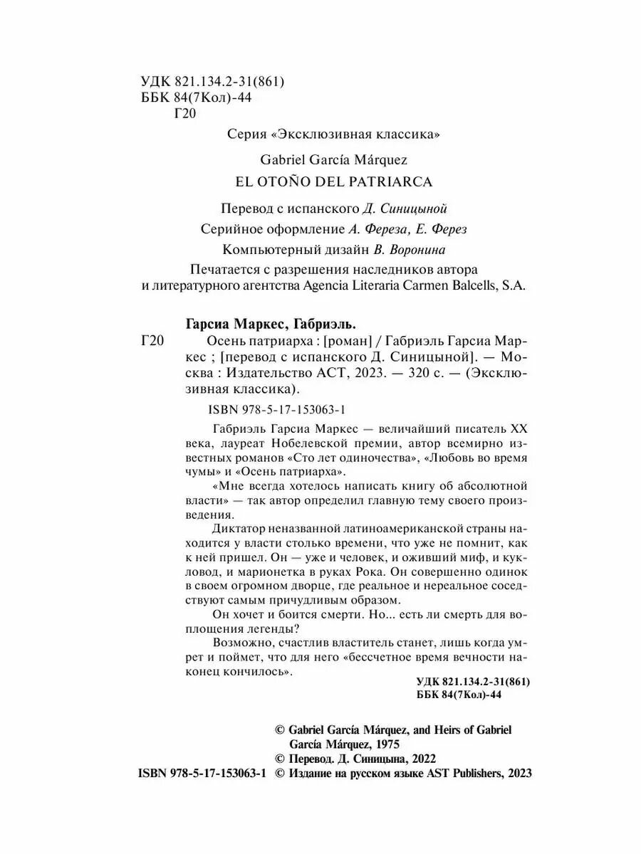 Ниже Вы можете прочитать отзывы на Осень патриарха (новый перевод), ознакомится с подробными характеристиками, посмотреть интересные обзоры и фотографии на Осень патриарха (новый перевод).