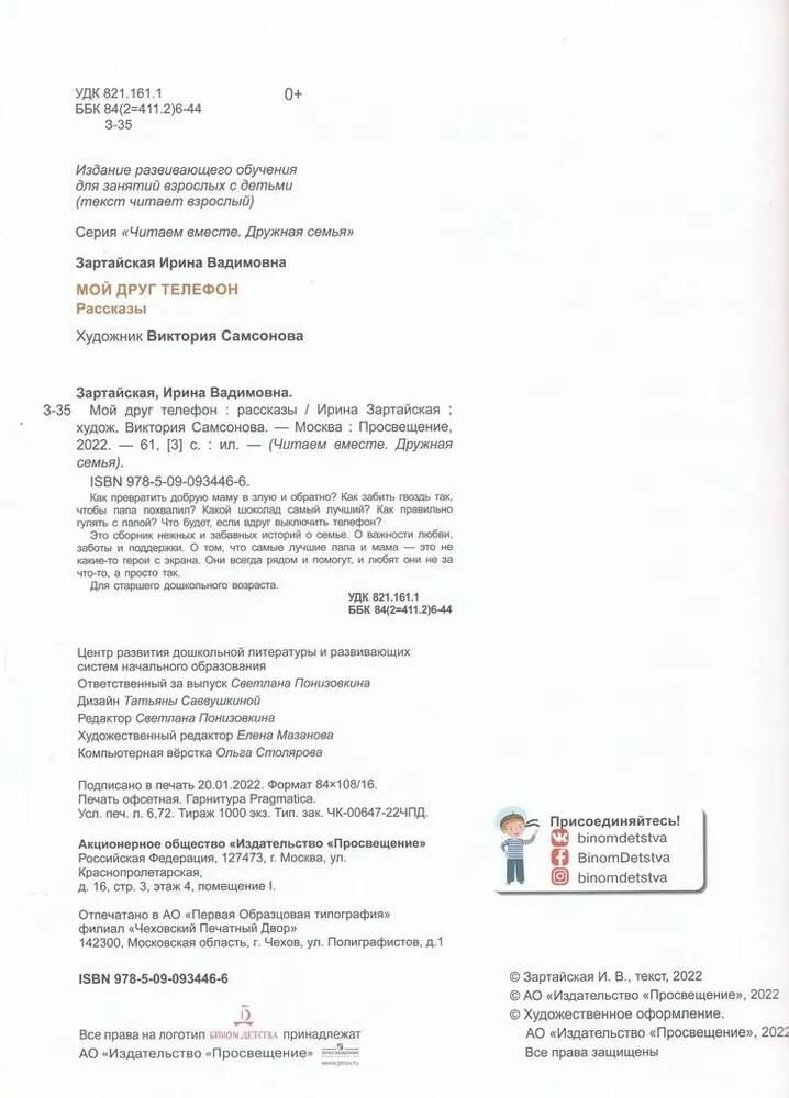 Книга бином Мой друг телефон. Рассказы. 2022 год, И. В. Зартайская интересное: