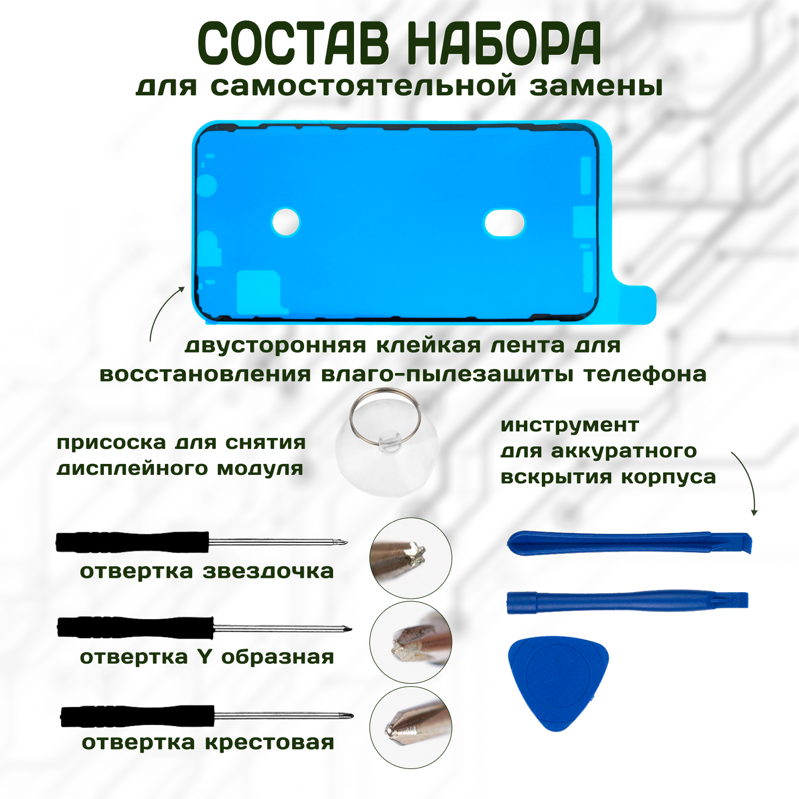 Аккумулятор / батарея увеличенной ёмкости FixitOn для Apple iPhone XR + набор отверток, скотч, лопатки для разбора