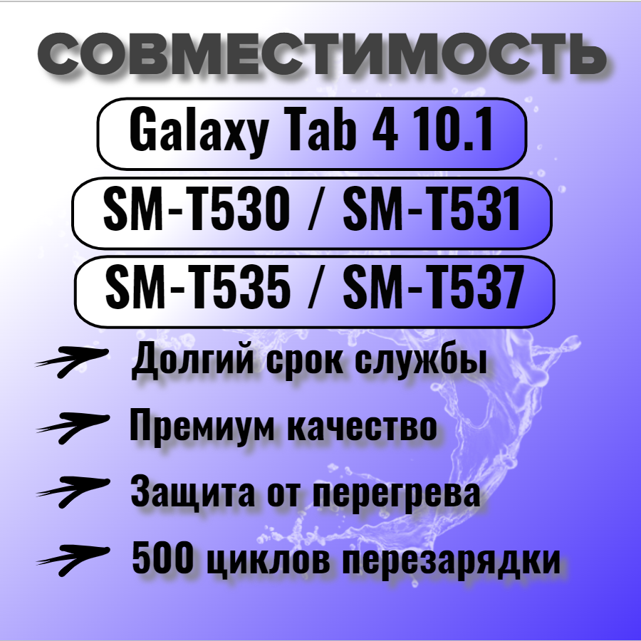 Аккумулятор для Samsung EB-BT530FBE (T530 / T535 Tab 4 10.1) Premium, 6800 mAh интересное: