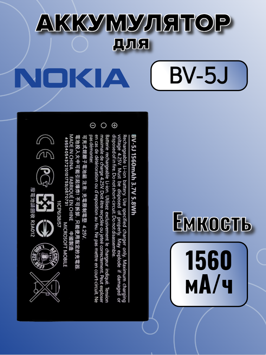 Аккумулятор для Nokia BV-5J (Microsoft 435 / 532) Premium, 1560 mAh интересное: