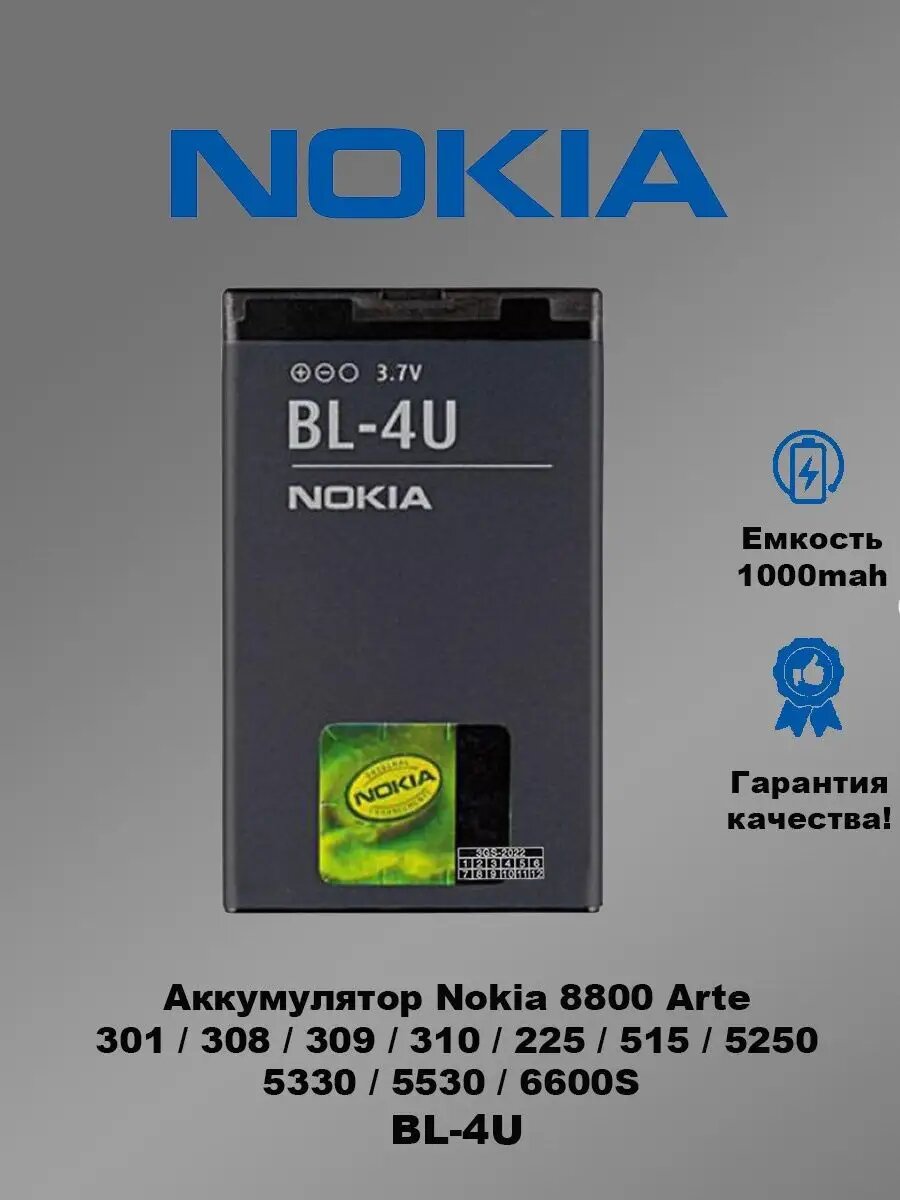 Аккумулятор 3GS BL-4U, для Nokia 8800/5250/206/E75/Asha 310/301/6600s/Arte, интересное: