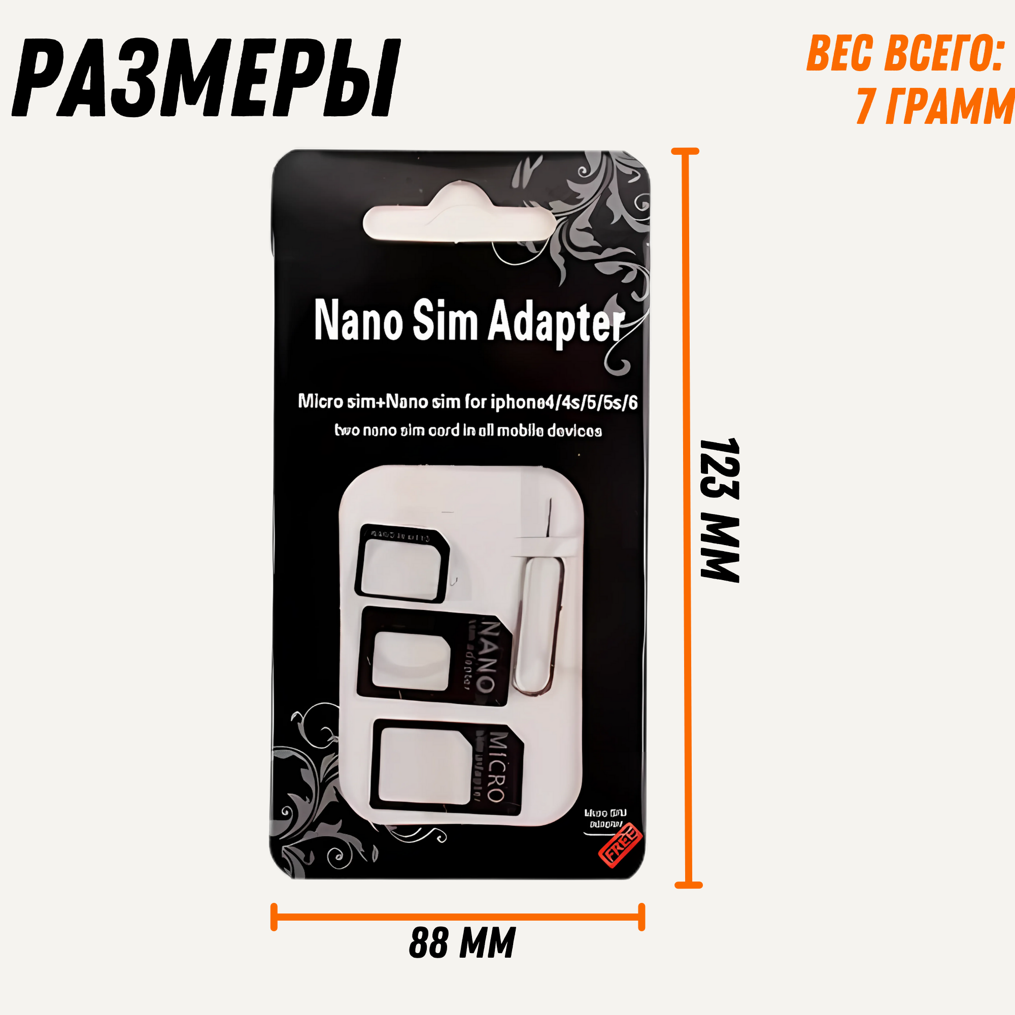 Купить Адаптер для SIM-карт MARC 3в1 с скрепкой для лотка — переходник Nano-SIM, Micro-SIM на Mini-SIM