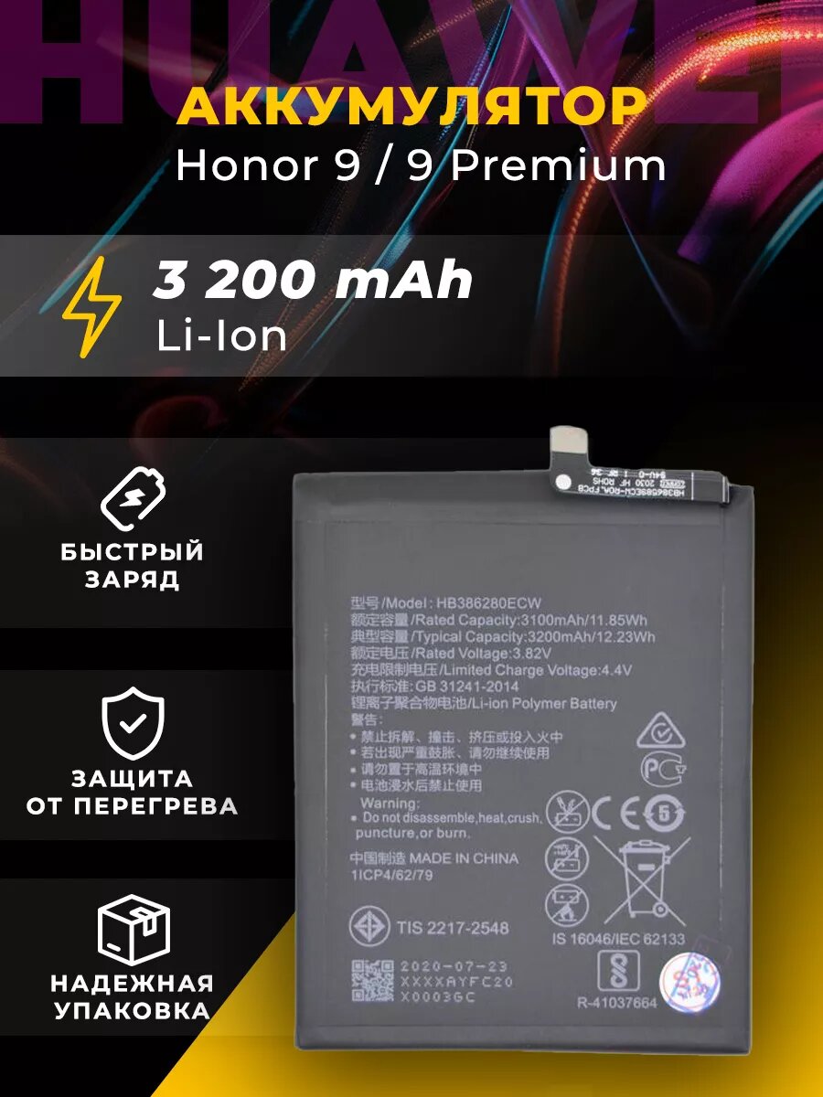 Аккумуляторная батарея, для Huawei P10 Honor 9 9 Premium, ёмкость 3200mAh интересное: