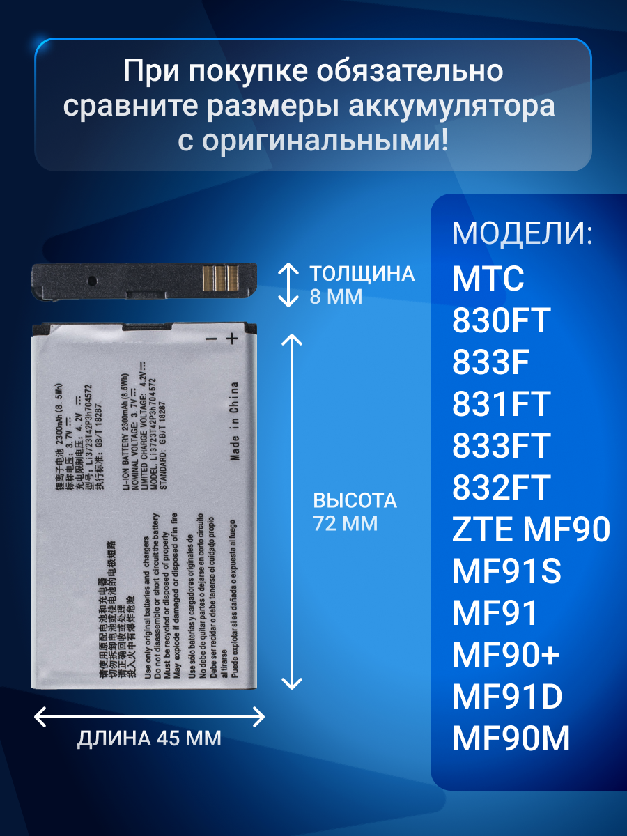 Купить Аккумулятор / батарея для модема Li3723T42P3h704572 для ZTE MF90, MF91S, MF91, МТС 830FT, 833F, 831FT, 833FT, 832FT