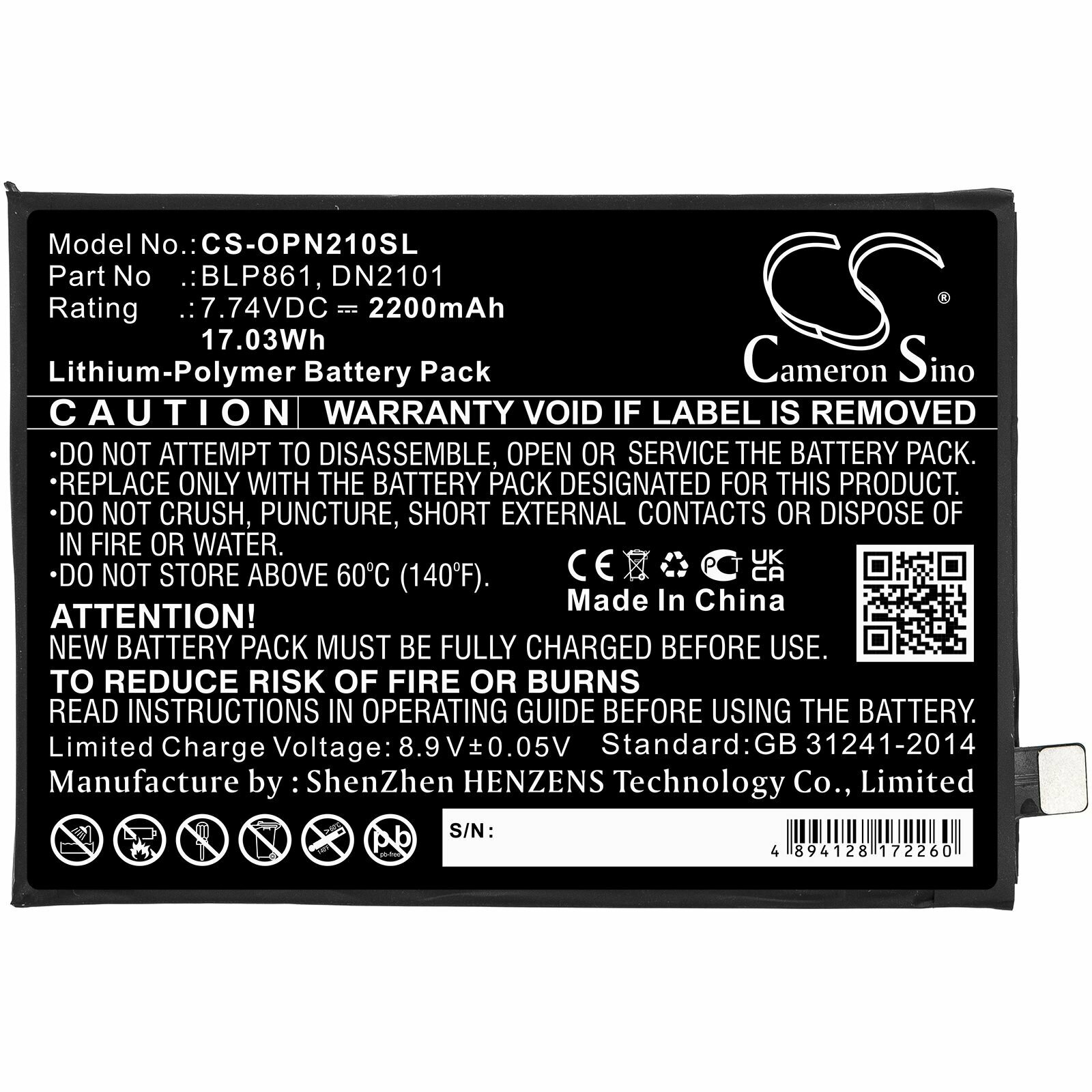 Купить Аккумулятор для Oneplus BLP861, OnePlus 9RT, Nord CE, OnePlus Nord 2 - CS-OPN210SL от компании Cameron Sino