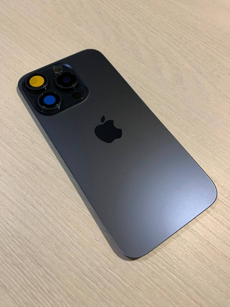IPhone 15 Pro задняя крышка в сборе с окошками камеры (Black Titanium) черный титан
