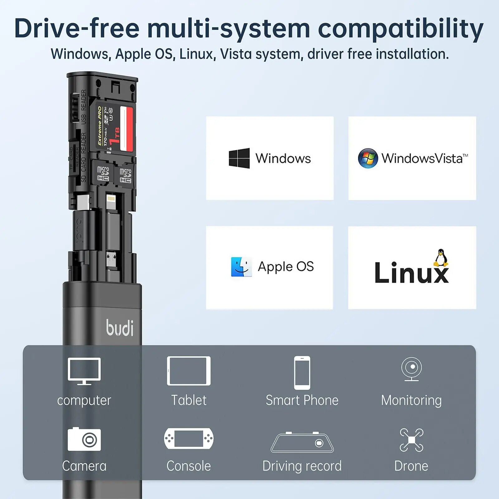 Интеллектуальный адаптер BUDI, U-диск, считыватель SD-карт для iPhone 14 13 12 Samsung S22 S21, расширение ноутбука, 1pc интересное: