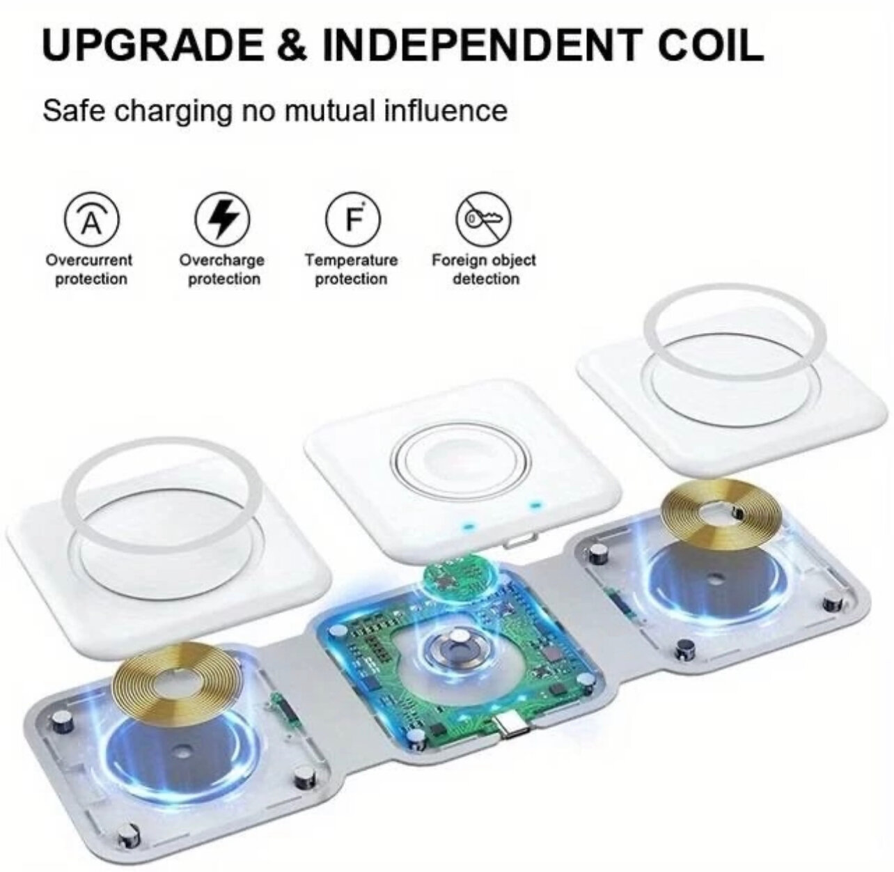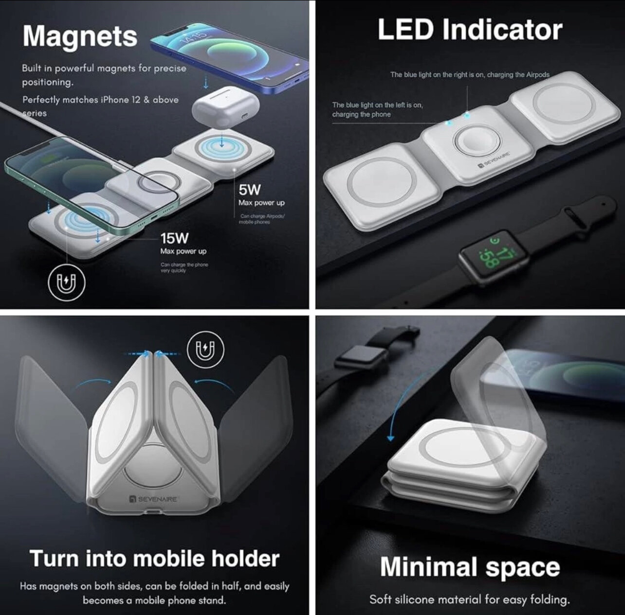Беспроводная магнитная зарядная станция 3 в 1 для iPhone, Watch, AirPods интересное: