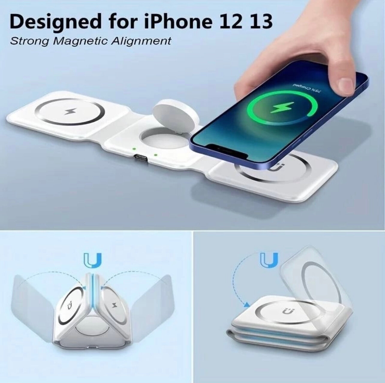 Купить Беспроводная магнитная зарядная станция 3 в 1 для iPhone, Watch, AirPods