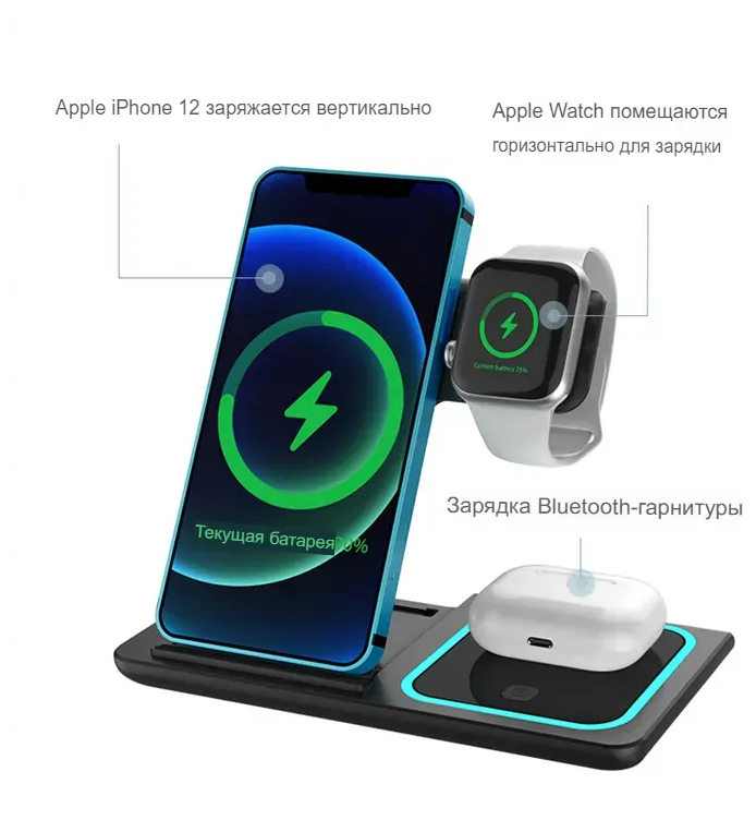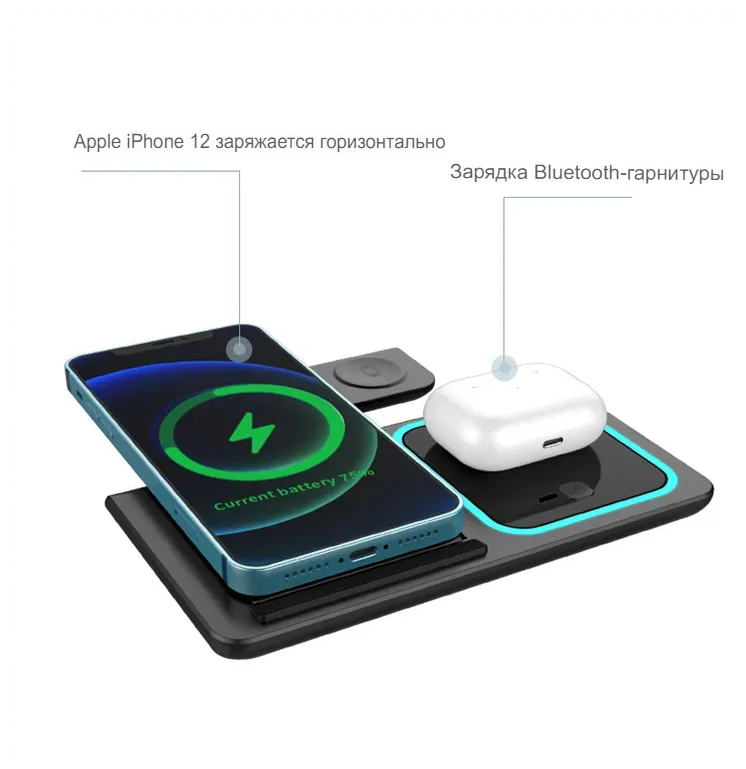 Беспроводная док-станция Gelbert GBT-WD05, для iPhone, Samsung, Xiaomi и Apple Watch, черная интересное: