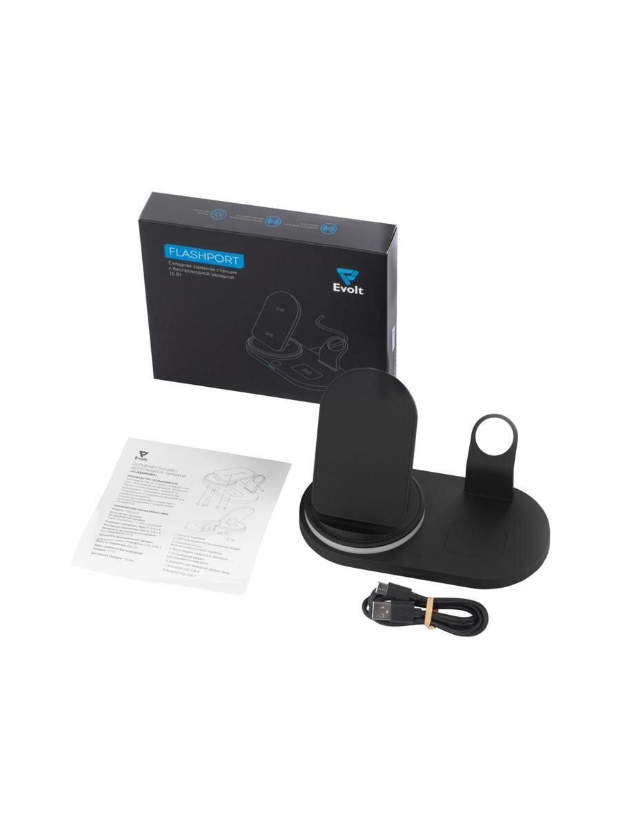 Купить Складная зарядная станция с беспроводной зарядкой «Flashport», 15 Вт, цвет черный